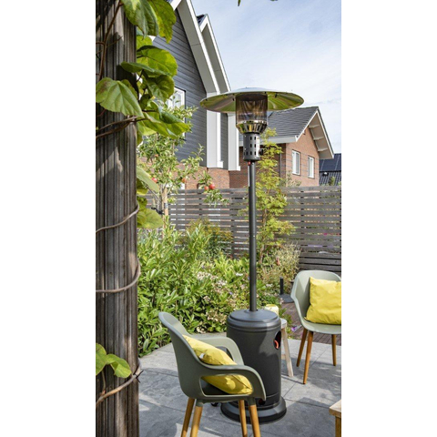 Avec une puissance maximale de 10000 watts et une portée d'environ 50 à 75 m², vous disposez de plus qu'assez de capacité pour rendre une grande terrasse ou un coin de jardin agréable. La chaleur est dirigée grâce au capot et au turbo top, ce qui vous permet d'utiliser l'énergie efficacement et de réduire les pertes de chaleur. Le contrôle du gaz est réglable de manière variable, afin que vous puissiez facilement l'adapter à la météo et au nombre de personnes à l'extérieur. De cette façon, vous ne consommez jamais plus de gaz que nécessaire et vous gardez les coûts d'utilisation sous contrôle. Parfait si vous êtes régulièrement dehors avec des amis ou de la famille et que vous souhaitez toujours être assuré d'une température confortable.