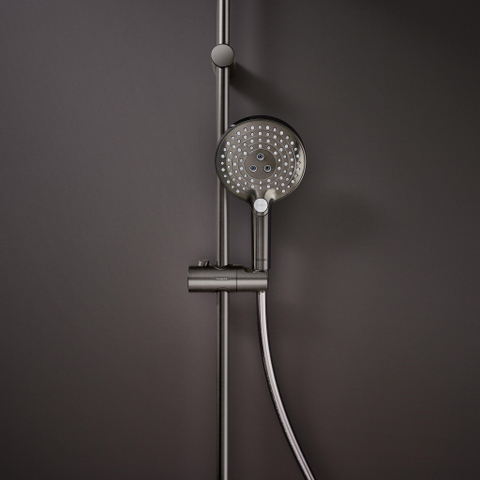 Le design de cette douchette est un mélange parfait de modernité et d’intemporalité. La finition chrome noir brossé offre un aspect luxueux qui attire immédiatement l’attention dans votre salle de bains. Grâce à la forme ronde de la pomme de douche d’un diamètre de 120 mm, vous bénéficiez d’une large répartition uniforme de l’eau. Cela rend la douche non seulement plus agréable, mais donne aussi à votre salle de bains un aspect soigné et contemporain. La teinte noire mate subtile s’accorde parfaitement avec des intérieurs minimalistes ou industriels, faisant de votre salle de bains un véritable point focal.