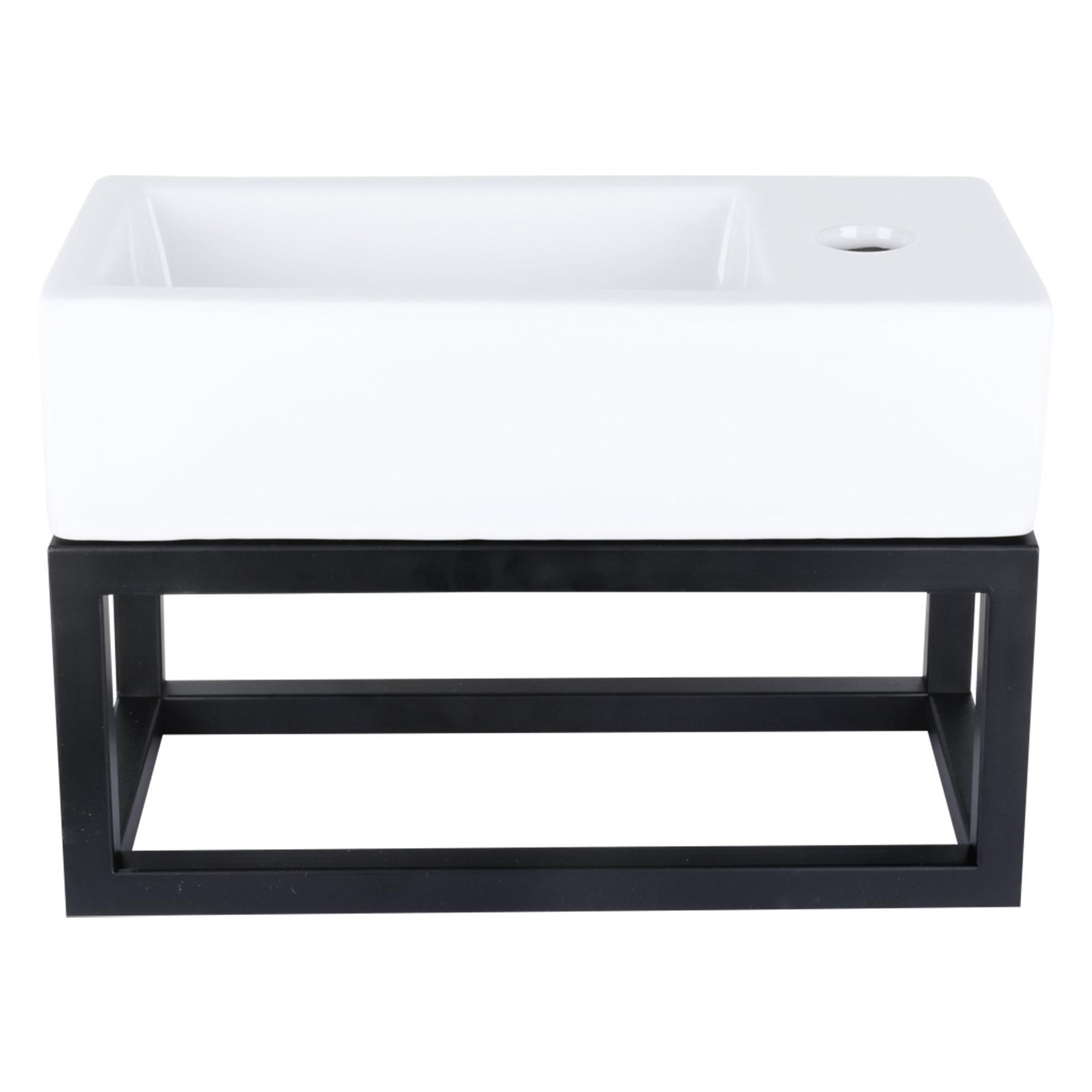 Differnz Ravo Lavabo compact - 38.5x18.5x9.5cm - 1 trou de robinet à droite - céramique blanc