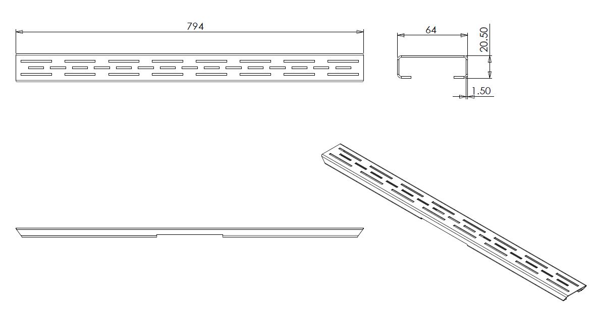 Cette grille est spécialement fabriquée pour les caniveaux de douche de troisième génération de 80 cm avec bride, vous garantissant une connexion sans faille. Les dimensions sont soigneusement adaptées à la taille standard, vous permettant de poser la grille sans difficulté. Grâce à la conception réfléchie avec bride, la grille reste solidement en place et est facile à retirer pour le nettoyage ou l'entretien. Ainsi, vous maintenez votre caniveau de douche toujours propre et sans obstruction, ce qui contribue à un écoulement optimal et à un environnement de salle de bains frais.