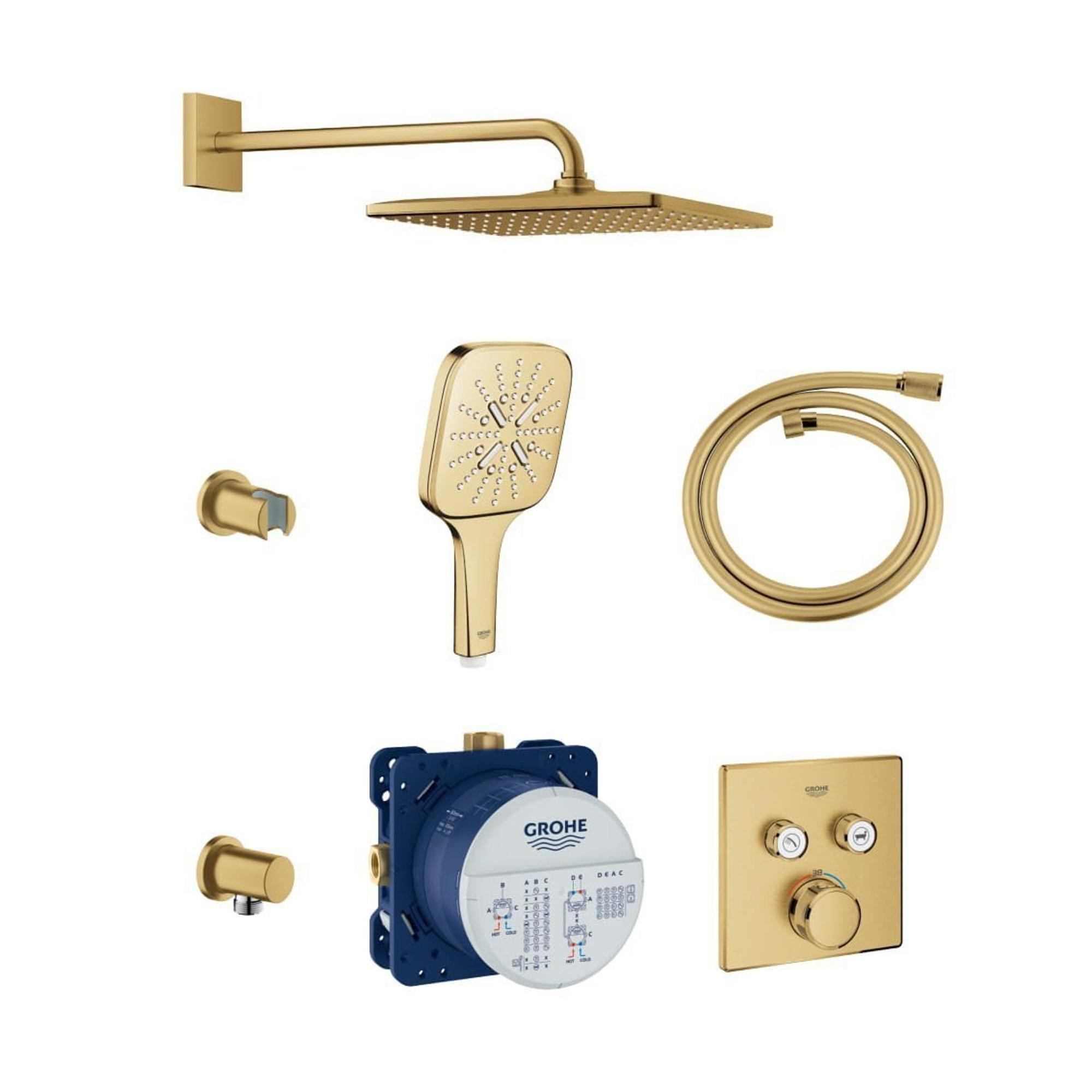 GROHE Grohtherm SmartControl Ensemble de douche de tête encastré - douche de tête carrée 31cm - douchette carrée - bras mural - cool sunrise brossé