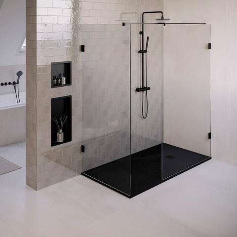 Brauer Relievo Crag Receveur de douche - 90x180cm - antidérapant - antibactérien - marbre minéral - noir mat