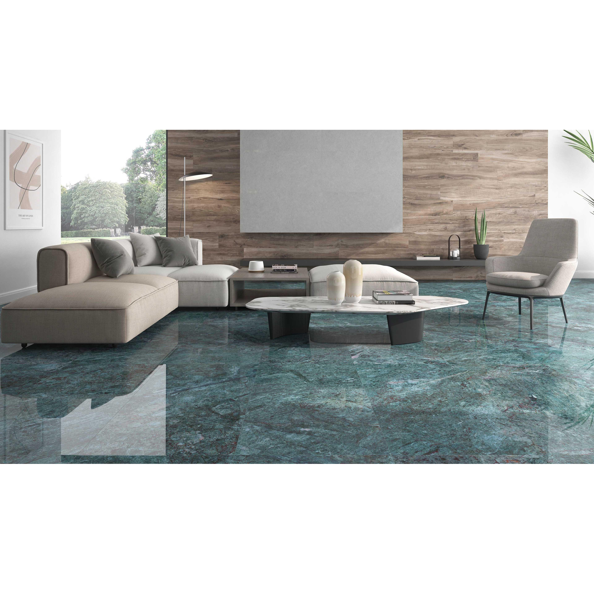 Le carreau Douglas Jones Marbles peut être qualifié de magnifique en raison de son superbe effet marbre et de sa finition raffinée. Les veines subtiles et les nuances de la couleur Smeraldo confèrent au carreau un aspect unique et luxueux qui attire immédiatement le regard. Les bords rectifiés assurent une finition nette et sans joints apparents, créant ainsi une ambiance moderne et élégante dans la pièce où le carreau est posé.