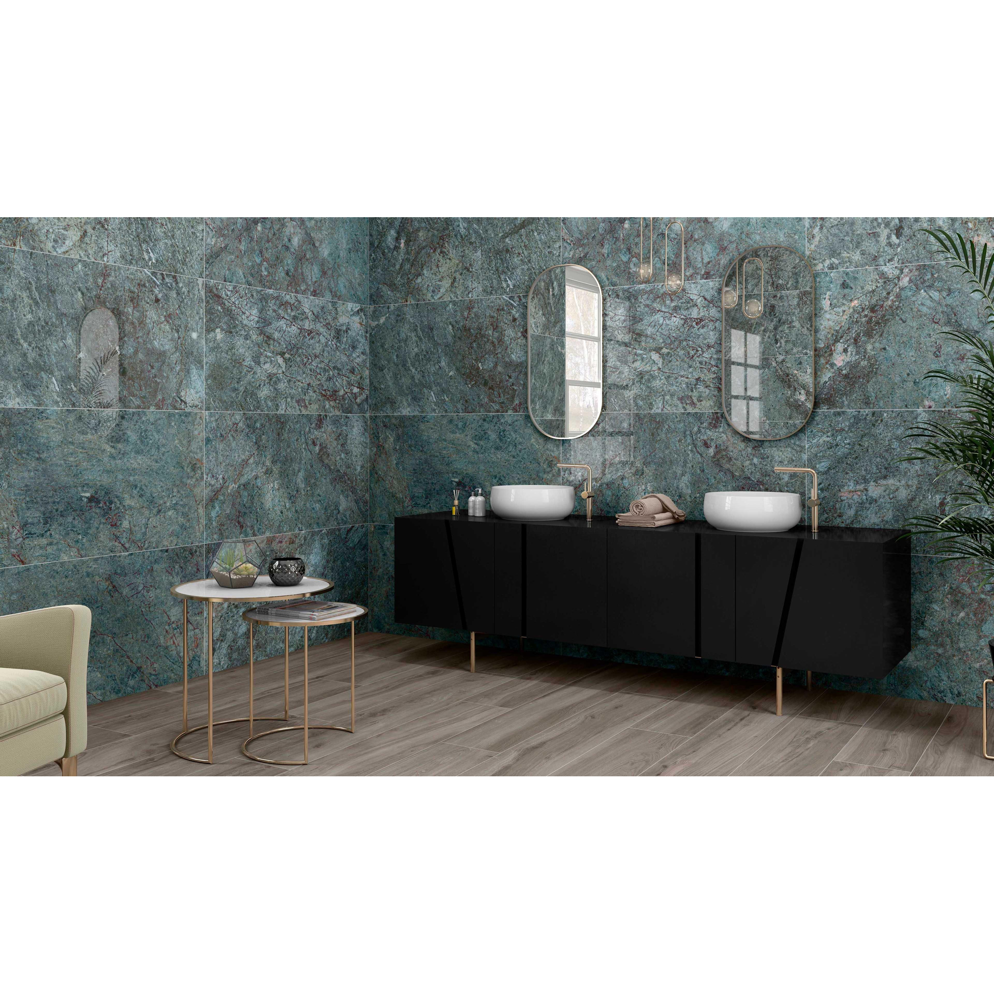 Le carreau de sol et de mur Douglas Jones Marbles aux dimensions 60x120cm et d''une épaisseur de 10.5mm, fabriqué en grès cérame rectifié dans la magnifique couleur Smeraldo, est un véritable accroche-regard pour toute salle de bains ou cuisine. Avec son apparence élégante et sa qualité durable, ce carreau ajoute immédiatement une touche de luxe à la pièce. Que vous soyez à la recherche d''un carreau pour le sol ou le mur, ce carreau offre à la fois style et fonctionnalité, ce qui en fait un excellent choix pour tout intérieur.
