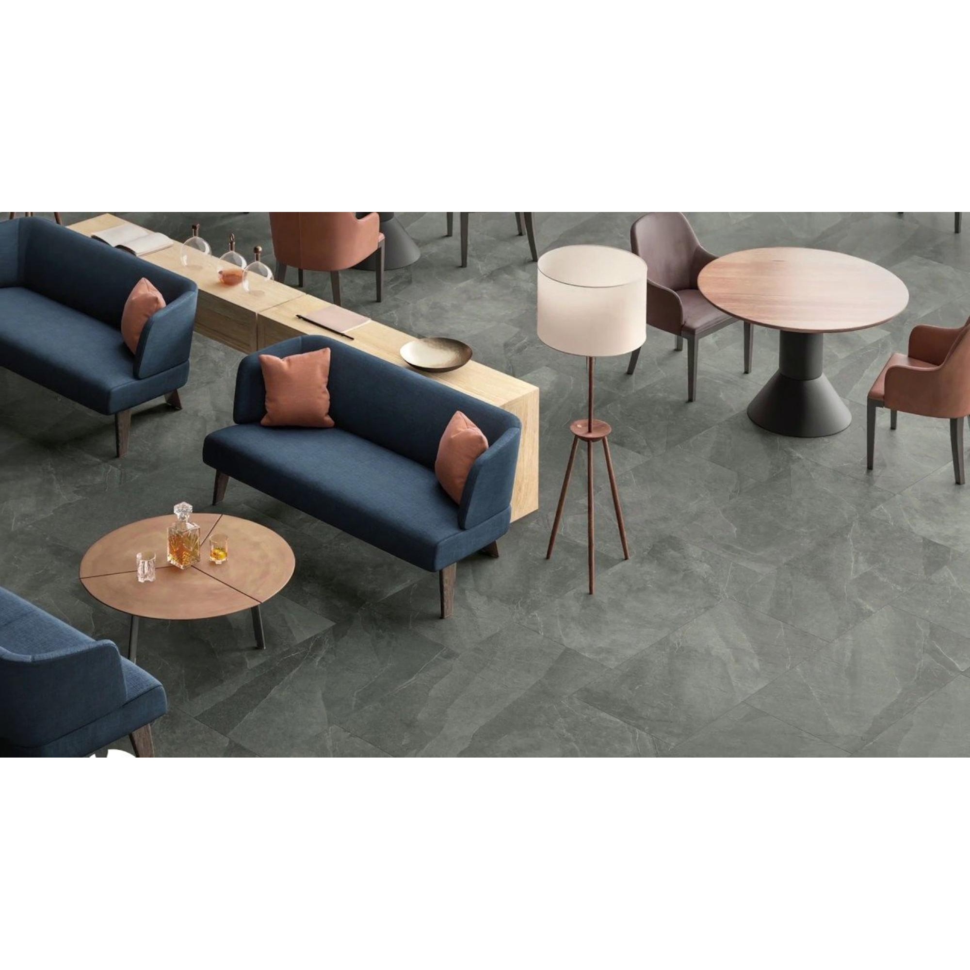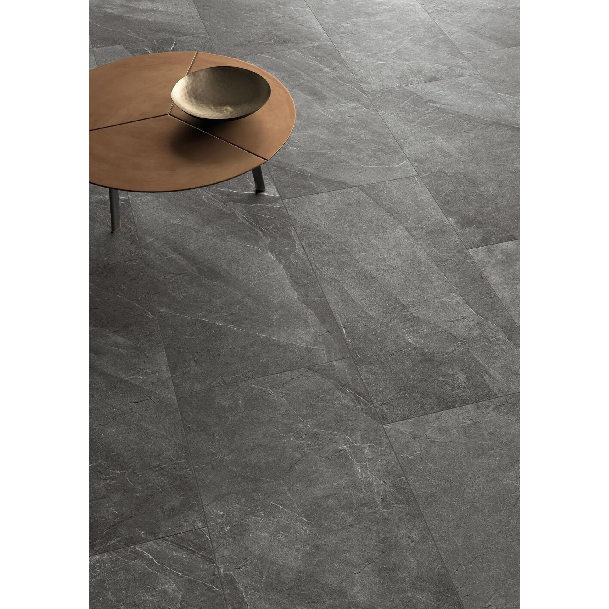 Le carreau Italgraniti Shale se distingue par sa superbe texture et son aspect naturel. La surface est subtilement nervurée, ce qui crée un effet ludique tout en offrant une bonne adhérence. La couleur Ash a un effet apaisant et apporte une sensation de calme dans la pièce. Grâce aux bords rectifiés, les carreaux peuvent être posés bord à bord, ce qui donne une finition sans joint apparent.
