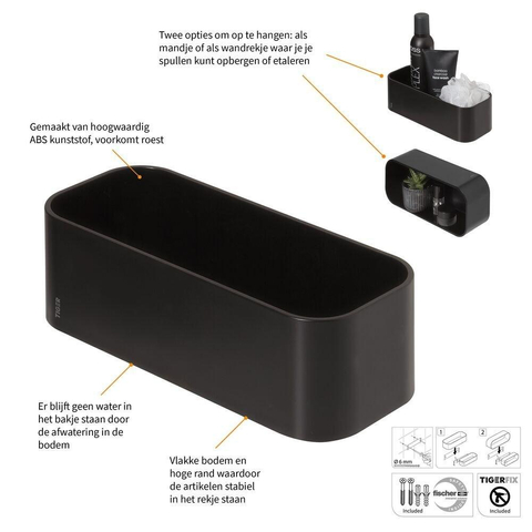 L’étagère est fabriquée en plastique ABS de haute qualité, ce qui la rend inoxydable et parfaitement adaptée aux pièces humides comme la douche. Le fond ouvert avec évacuation d’eau permet à l’eau de ne pas stagner, ce qui limite l’accumulation de résidus de savon et de calcaire. Le nettoyage est ainsi beaucoup plus simple : un rapide coup de chiffon et le panier retrouve son aspect frais. L’ABS est en outre robuste et résistant aux chocs, ce qui vous permet d’y déposer en toute tranquillité vos produits de soin quotidiens. Grâce à la combinaison de matériaux résistants et d’un design bien pensé, vous profitez pendant des années d’un espace douche ou toilettes propre et hygiénique.