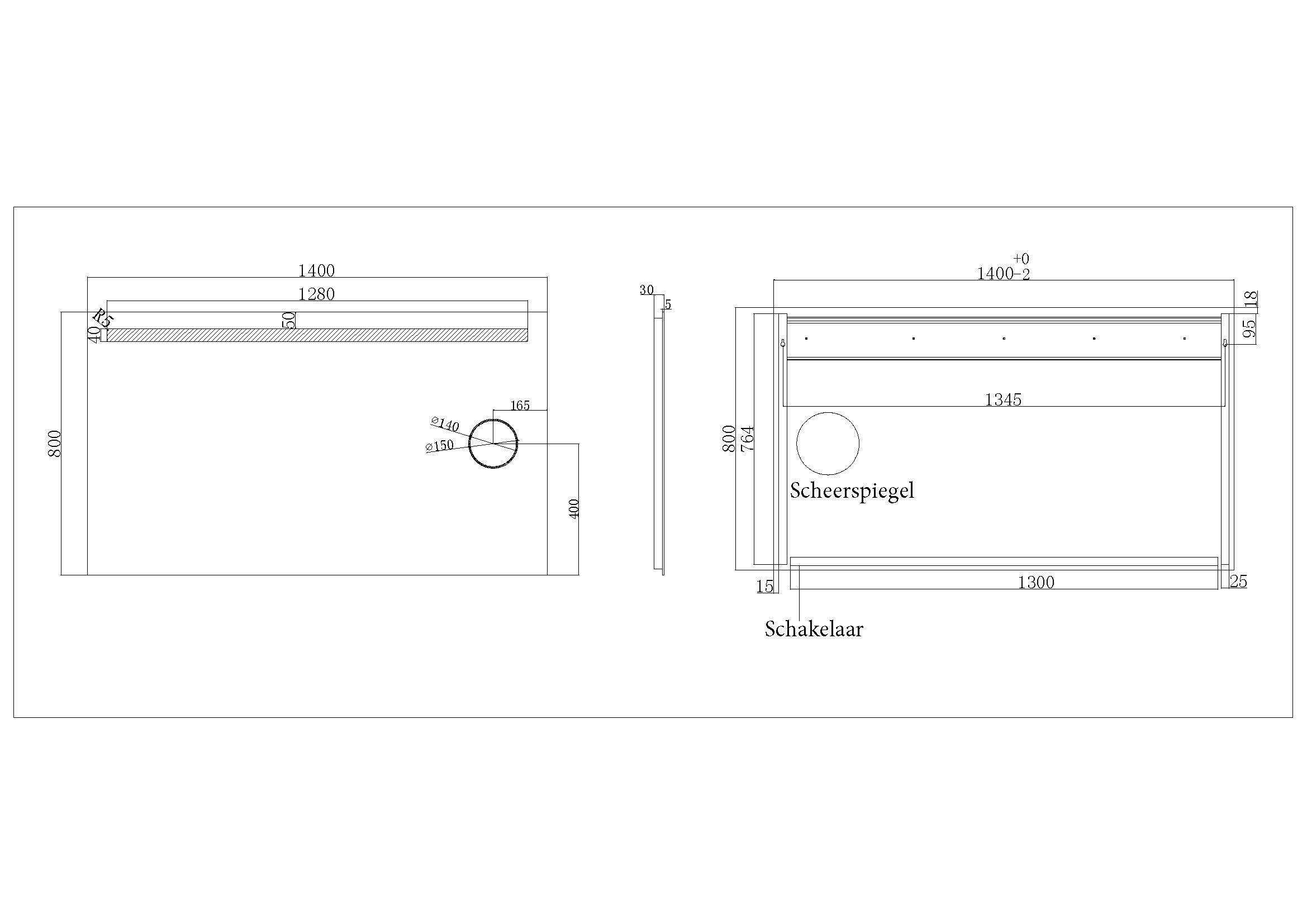 - Dimensions : 140 x 80 cm – adapté aux salles de bains de taille moyenne à grande