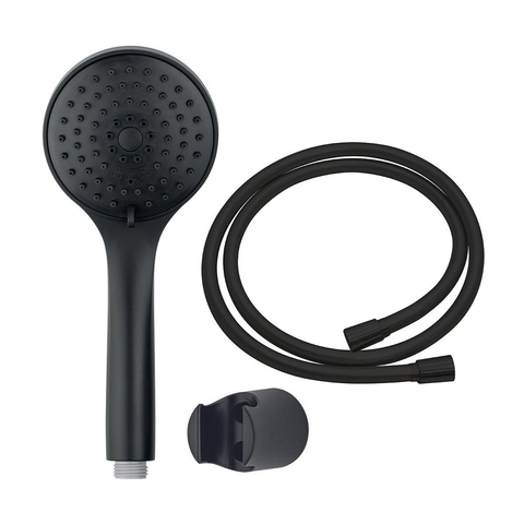 Nemo Spring Nero ensemble de douchette à main avec douchette à main ronde flexible de douche et support de douchette noir mat