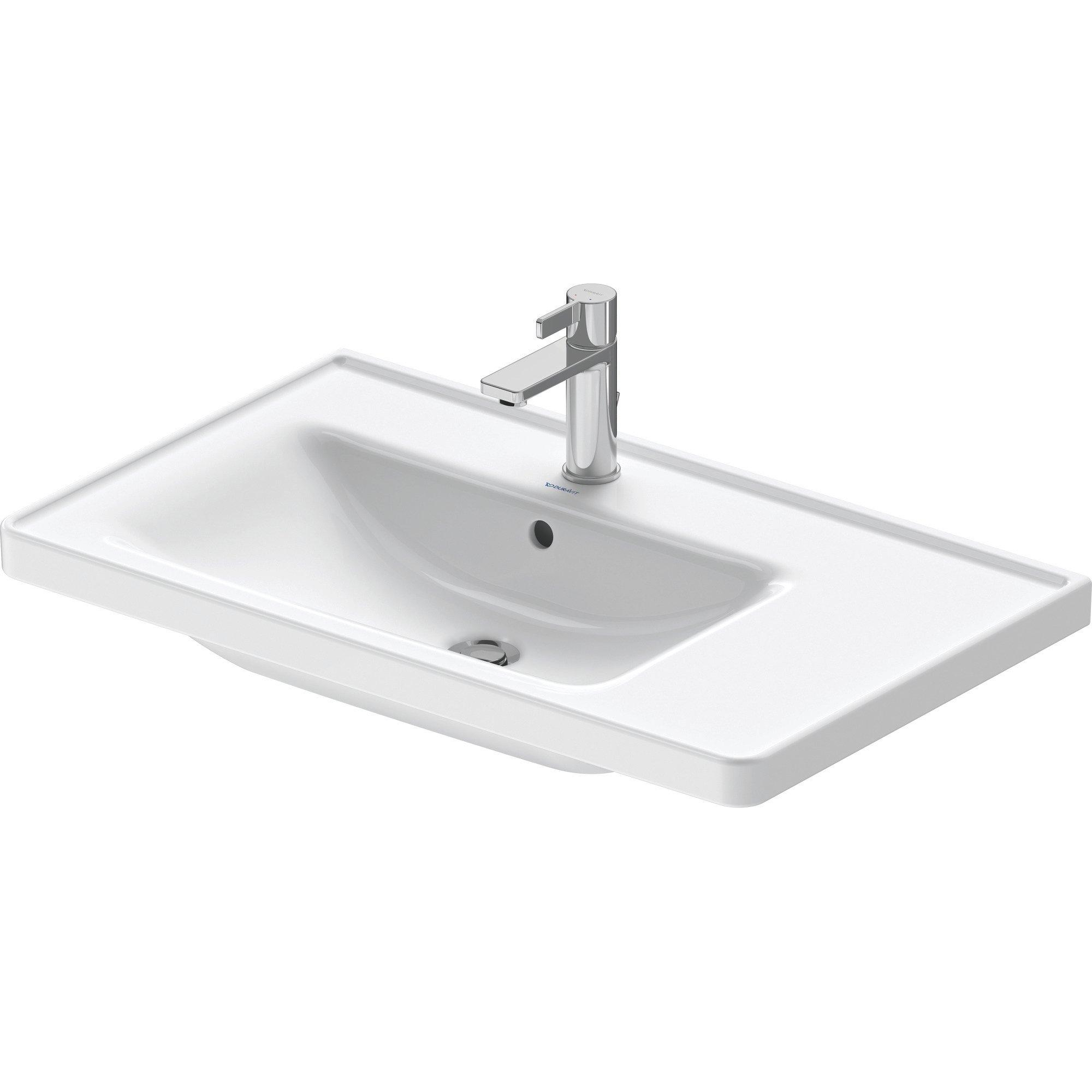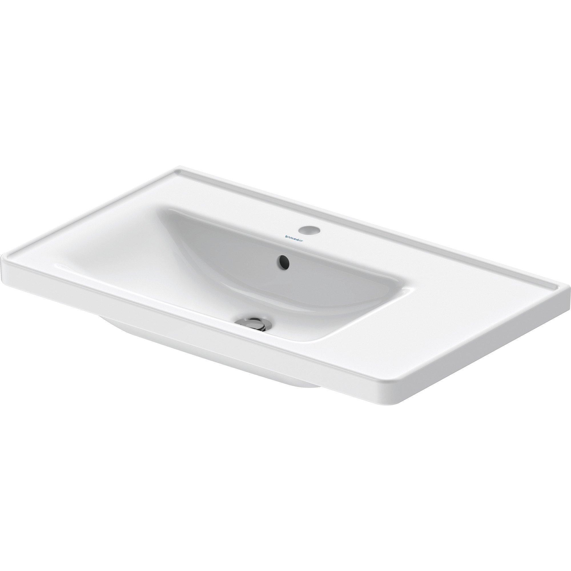 Duravit D-Neo lavabo avec WonderGliss 80x48x17cm 1 trou de robinet rectangulaire Céramique Blanc
