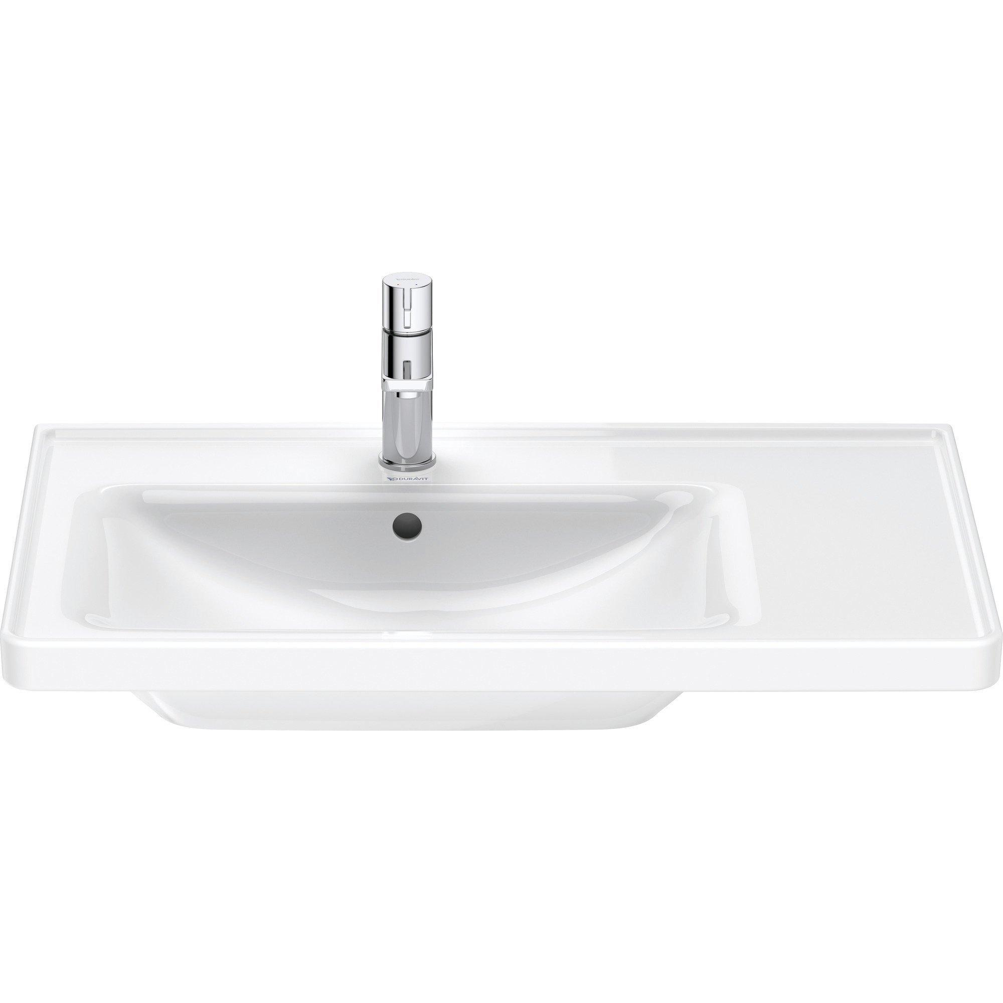 Outre sa valeur esthétique, le lavabo Duravit D-Neo est également très fonctionnel. Avec ses dimensions généreuses de 80x48x17cm, ce lavabo offre suffisamment d’espace pour un usage quotidien. Le trou de robinet est placé de manière stratégique pour un accès facile, tandis que la finition WonderGliss assure une surface lisse, résistante à la saleté et facile à nettoyer. Cela rend le lavabo non seulement beau, mais aussi pratique à l’usage.