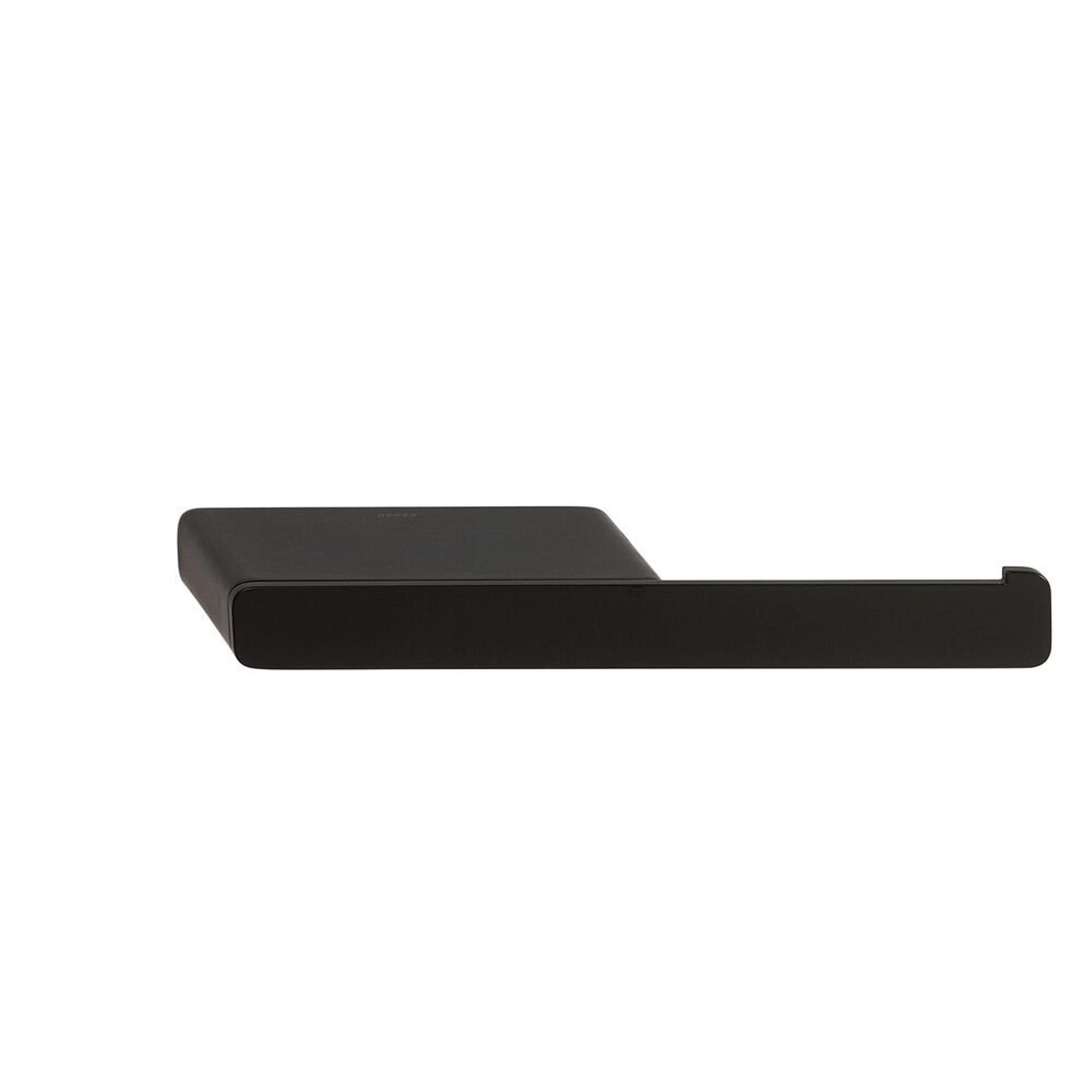 - Porte-rouleau de papier toilette noir mat élégant sans clapet, idéal pour les salles de bains modernes et industrielles.