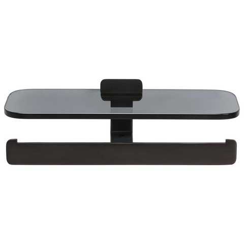 Geesa Shift porte-rouleau de toilette double noir métal brossé avec plan de couverture en verre fumé