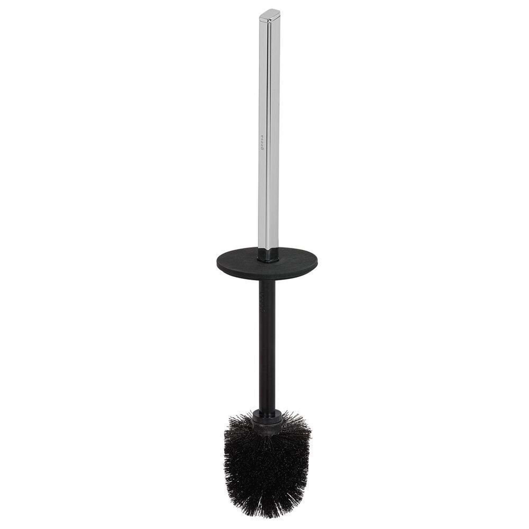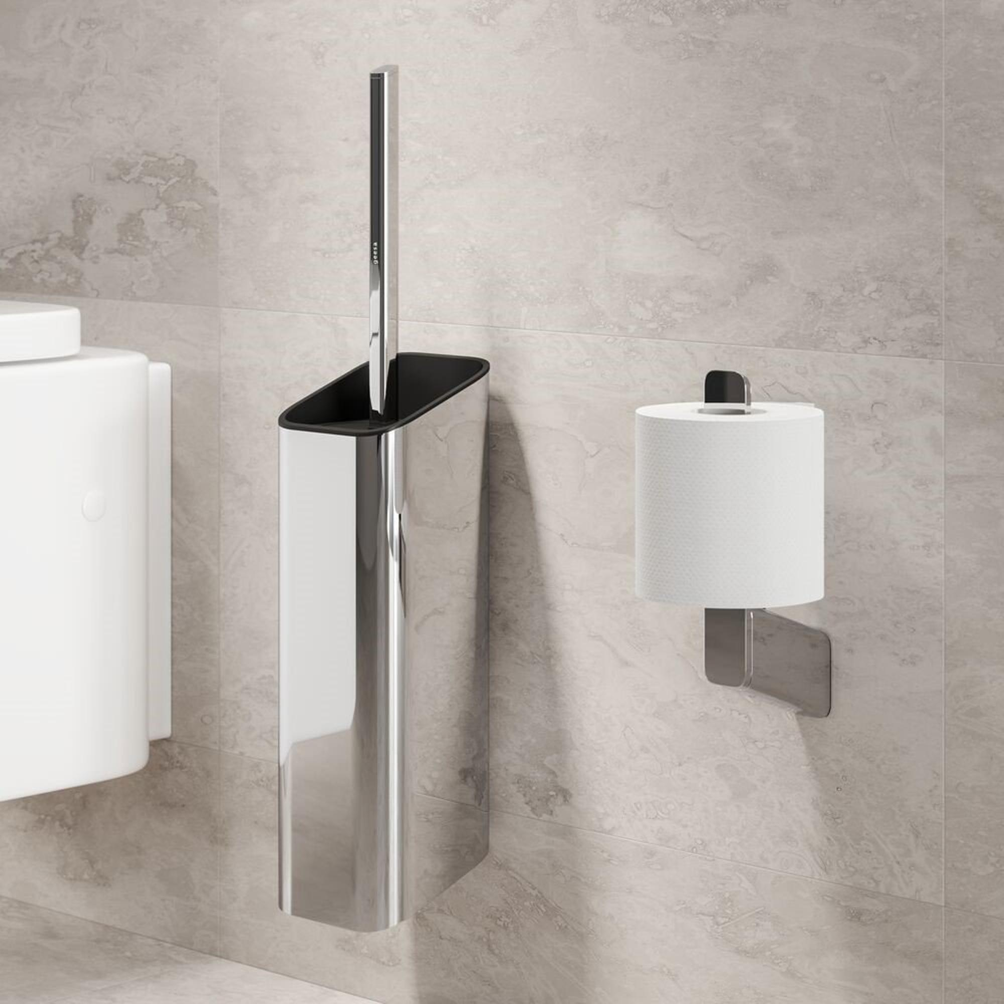 Le design minimaliste et rectiligne forme un jeu de lignes apaisant le long du mur, tandis que l’accent noir de la brosse et du couvercle crée un contraste raffiné. Votre espace toilettes adopte ainsi immédiatement un caractère moderne et étudié, sans donner une impression de surcharge. La finition en chrome à haute brillance s’harmonise parfaitement avec les robinets chromés, les pommes de douche et les autres accessoires, ce qui vous permet de créer facilement une unité dans le style de votre salle de bains. La forme reconnaissable issue de la même série rend encore plus attrayant le fait de coordonner plusieurs éléments entre eux, afin de composer pas à pas une salle de bains ou un espace toilettes complet et harmonieusement aménagé.