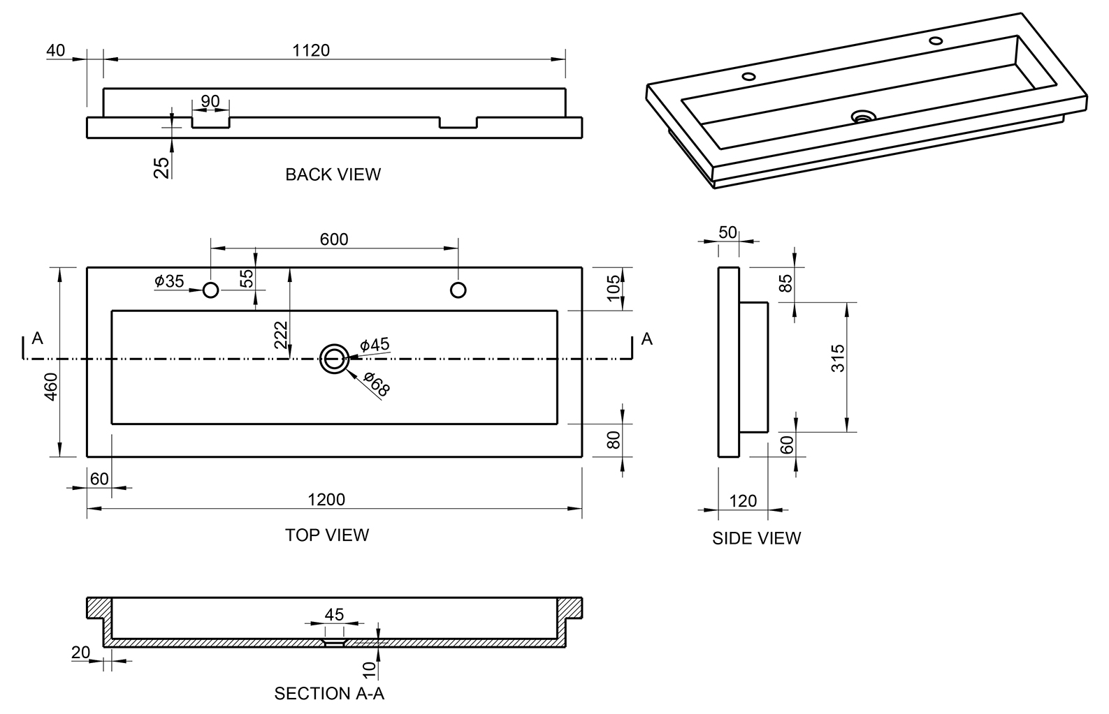 - Dimensions : 120 x 46 x 5 cm – idéal pour divers formats de salle de bains