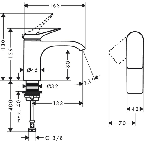 - ComfortZone 80 mm pour un espace optimal entre le robinet et le lavabo