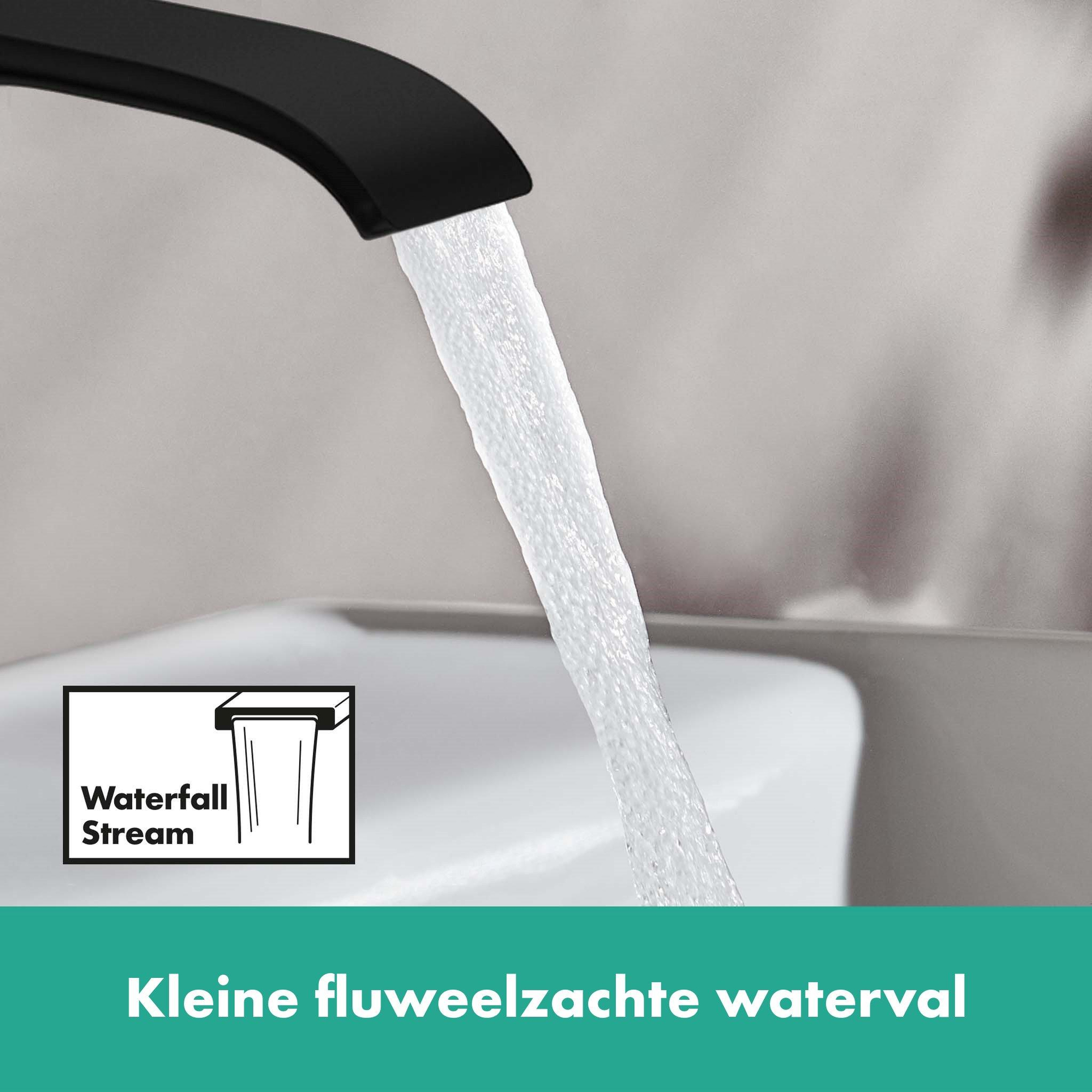 La finition noire mate donne au robinet une apparence intemporelle et pourtant moderne qui s'adapte sans effort à divers styles de salle de bains. Le design courbé subtil apporte une touche élégante sans être excessif. Grâce à la sortie extra-large, vous profitez d'un jet d'eau généreux qui est non seulement fonctionnel, mais aussi visuellement attrayant. Cette combinaison de forme et de couleur fait du robinet un véritable point focal, donnant à votre salle de bains une apparence exclusive. De plus, le revêtement noir mat reste beau longtemps, même en cas d'utilisation quotidienne, vous permettant de profiter pendant des années de cet ajout élégant.