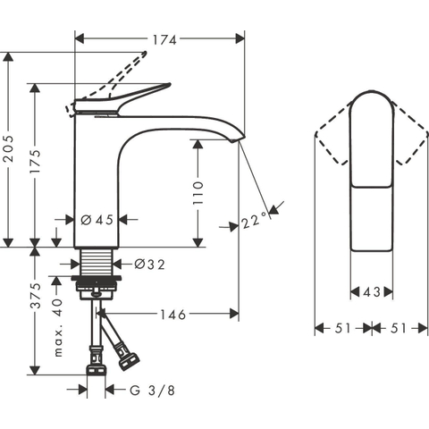 - ComfortZone 110 mm pour plus d'espace de mouvement au lavabo