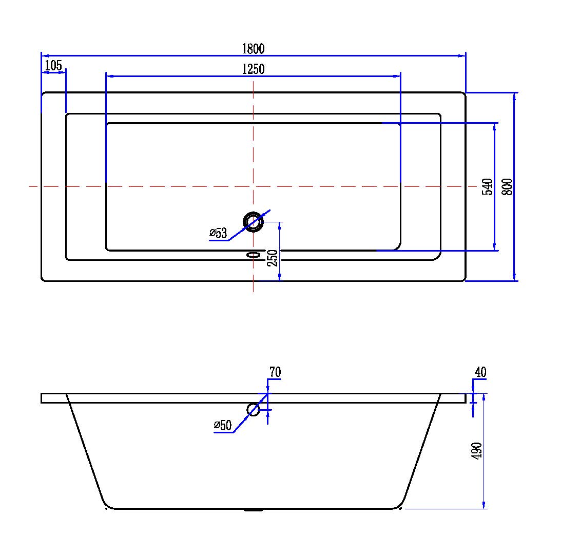 - Spacieuse baignoire duo de 180x80x49 cm, idéale pour se baigner à deux ou pour un confort allongé supplémentaire