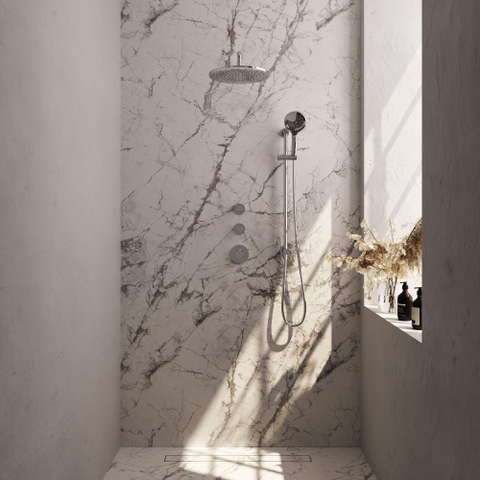 - Bras mural et barre de douche inclus