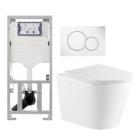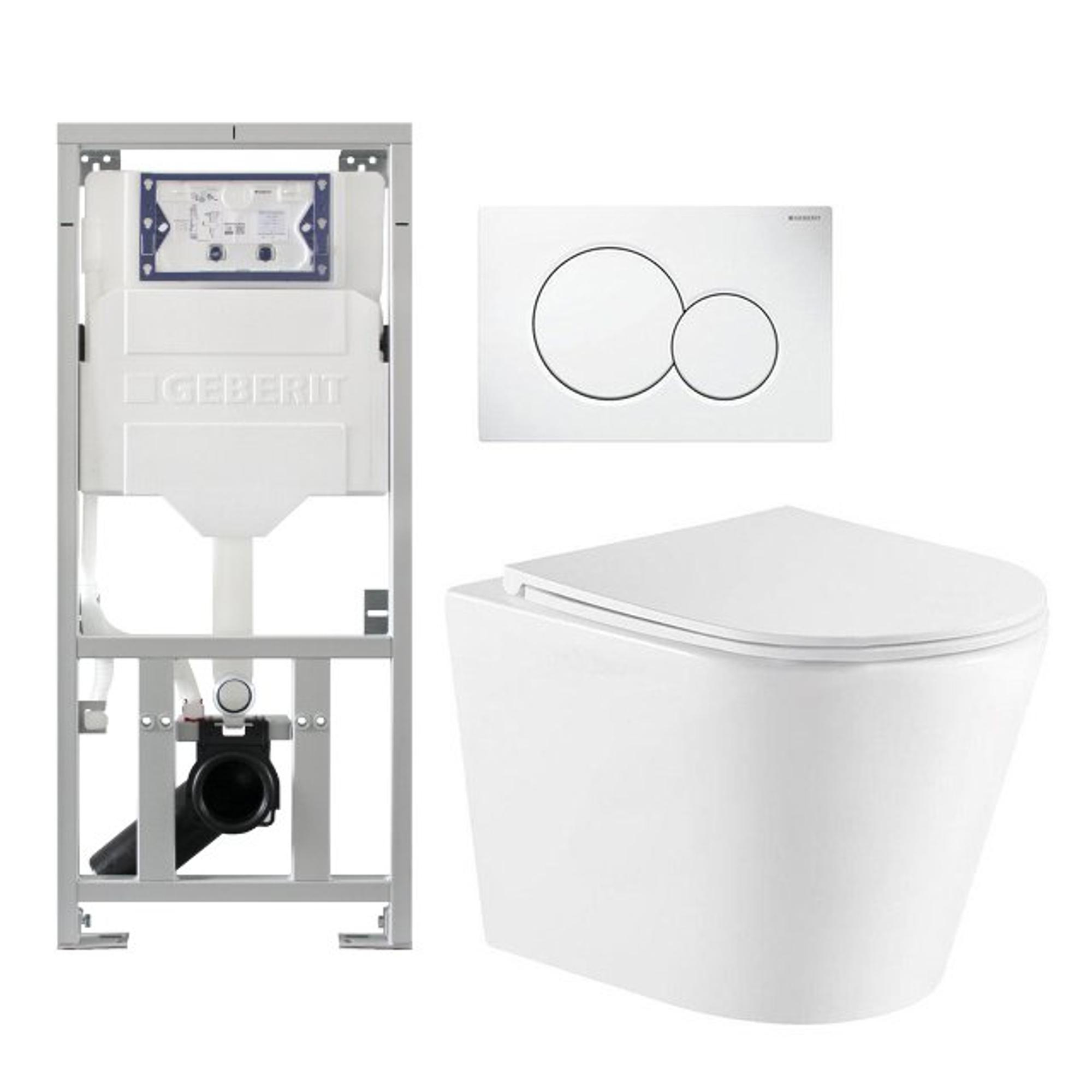 QeramiQ Dely Pack WC - réservoir encastré Geberit UP320 - plaque de commande blanche - WC - abattant - blanc brillant