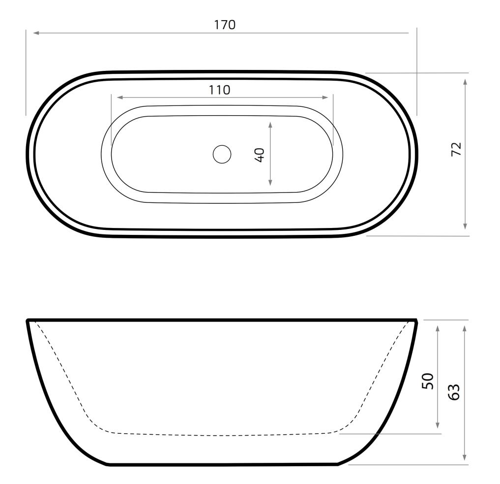 Xenz humberto baignoire en solid surface 170x72x63 bicolor blanc or