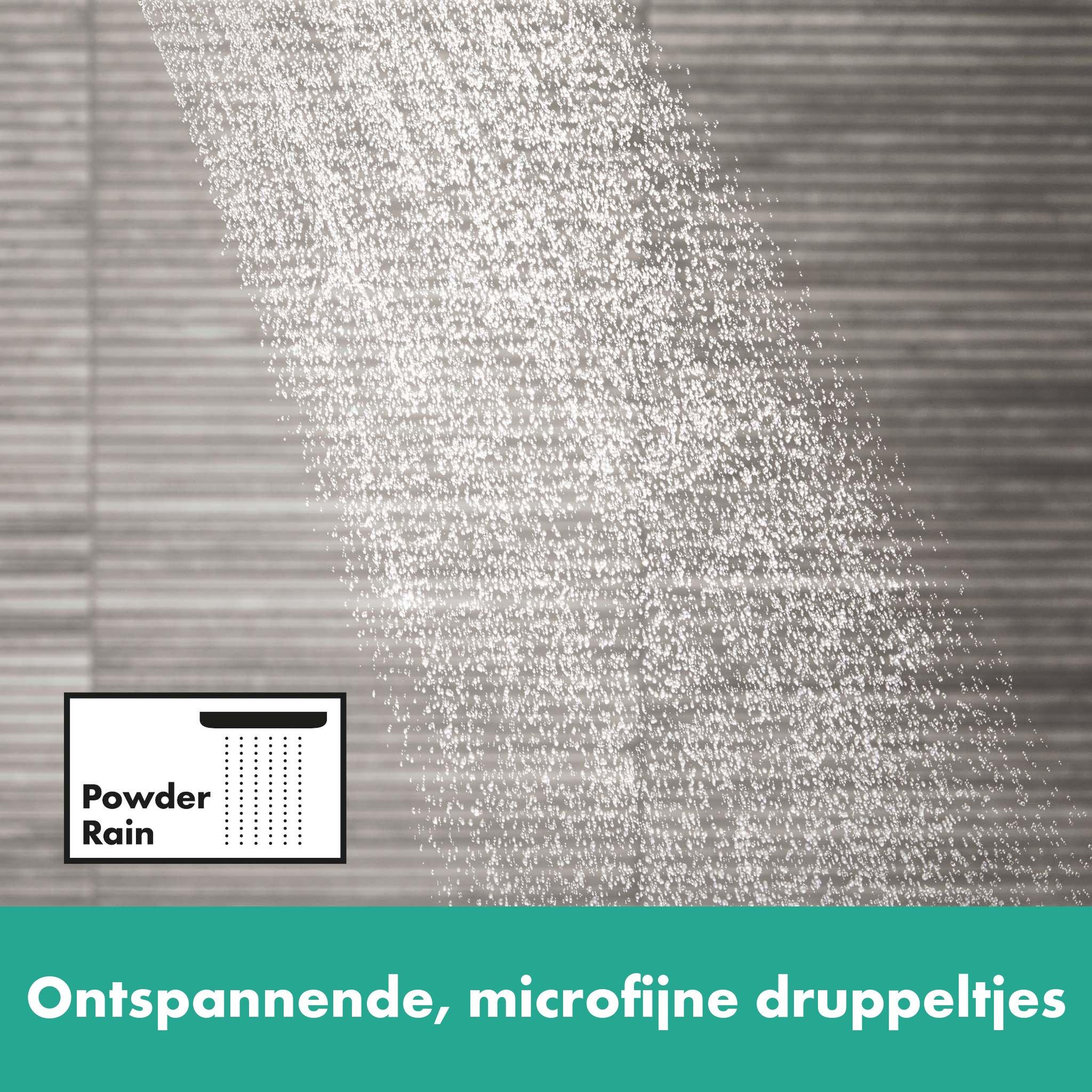 Le type de jet hansgrohe PowderRain enveloppe le corps doucement dans un cocon de minuscules gouttes d'eau. Détendez-vous avec une expérience aquatique sensuelle. Avec hansgrohe Pulsify, votre douche devient une oasis de moments de récupération et de détente quotidiens.