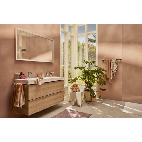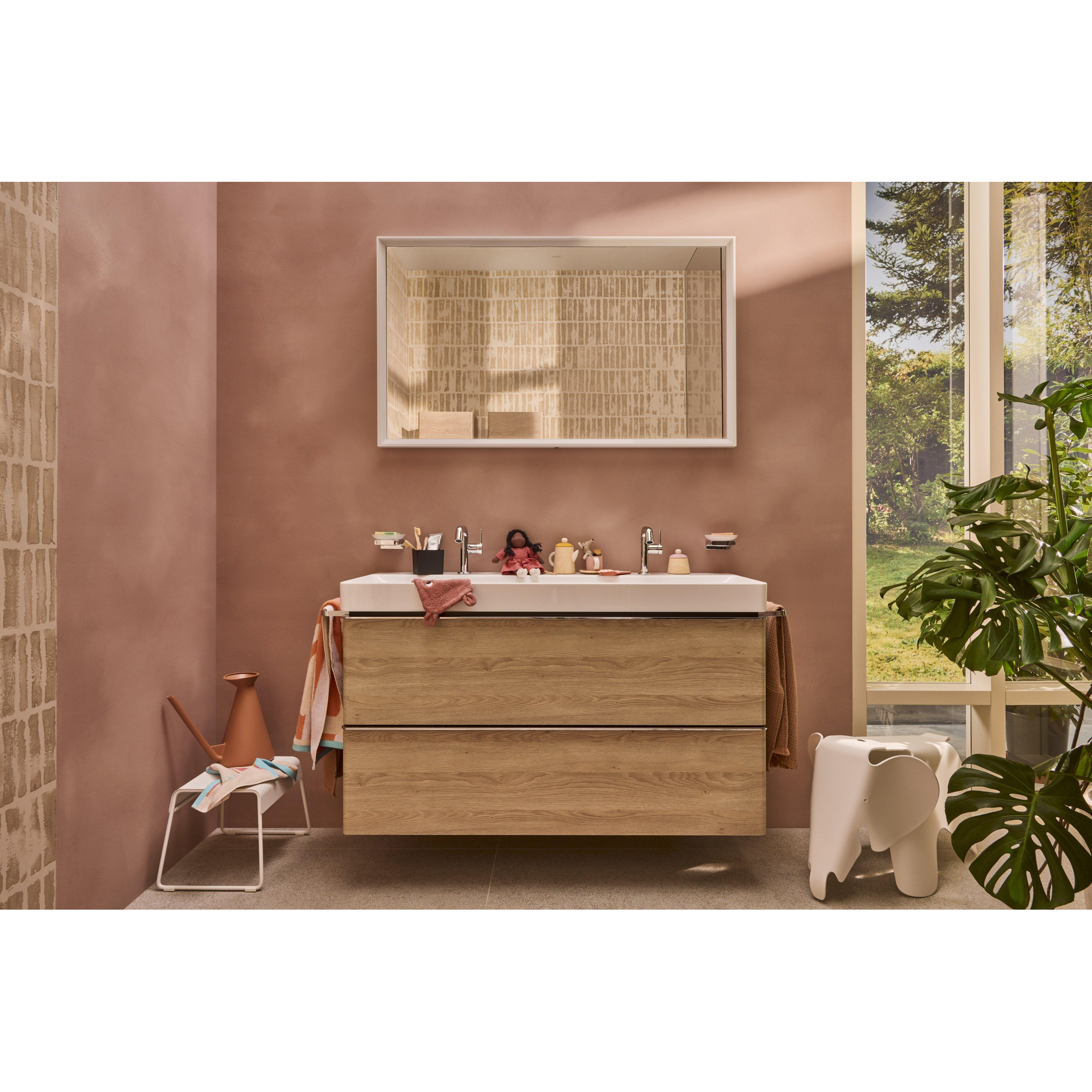 - Design : moderne et minimaliste, adapté aux robinets géométriques de salle de bains
