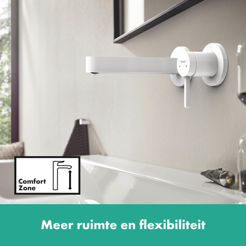 Avec ce robinet élégant et mince, vous donnez à votre salle de bains un aspect moderne et frais. Grâce au design minimaliste et à la finition blanche mate, une atmosphère calme et élégante se crée, parfaitement adaptée à un lavabo épuré ou à une vasque posée. Le montage mural offre en outre plus d'espace autour du lavabo, ce qui vous donne plus de liberté de mouvement et facilite le nettoyage. Ce robinet combine sans effort fonctionnalité et design raffiné, rendant votre salle de bains non seulement belle à voir, mais aussi pratique à utiliser. La commande souple à une seule poignée rend le réglage du débit et de la température de l'eau intuitif et confortable. Ainsi, vous profitez chaque jour d'une expérience agréable et sans souci au lavabo.