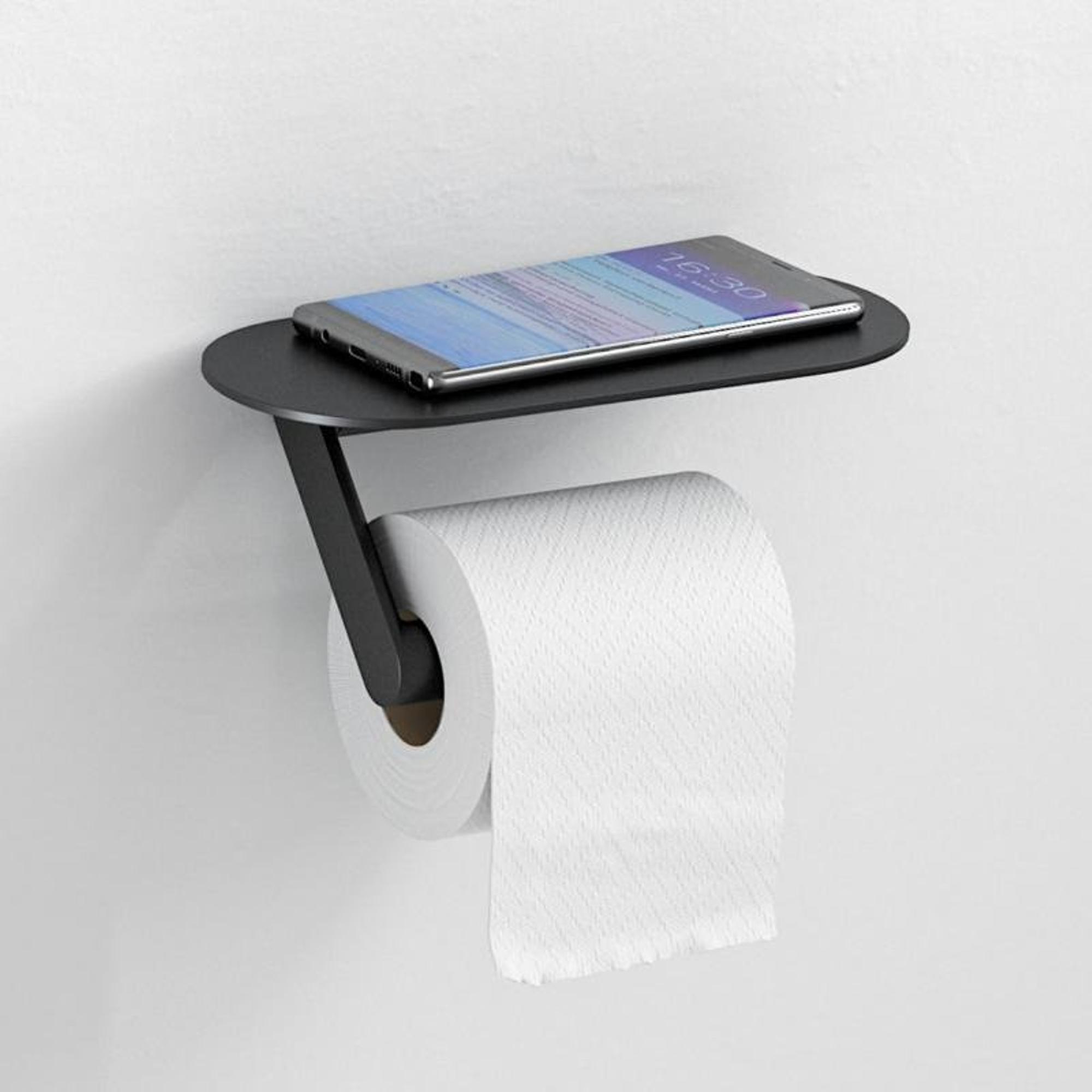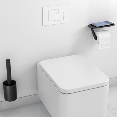 - Ensemble avec porte-rouleau de papier toilette et garniture brosse incluant une tablette astucieuse pour un espace de rangement supplémentaire