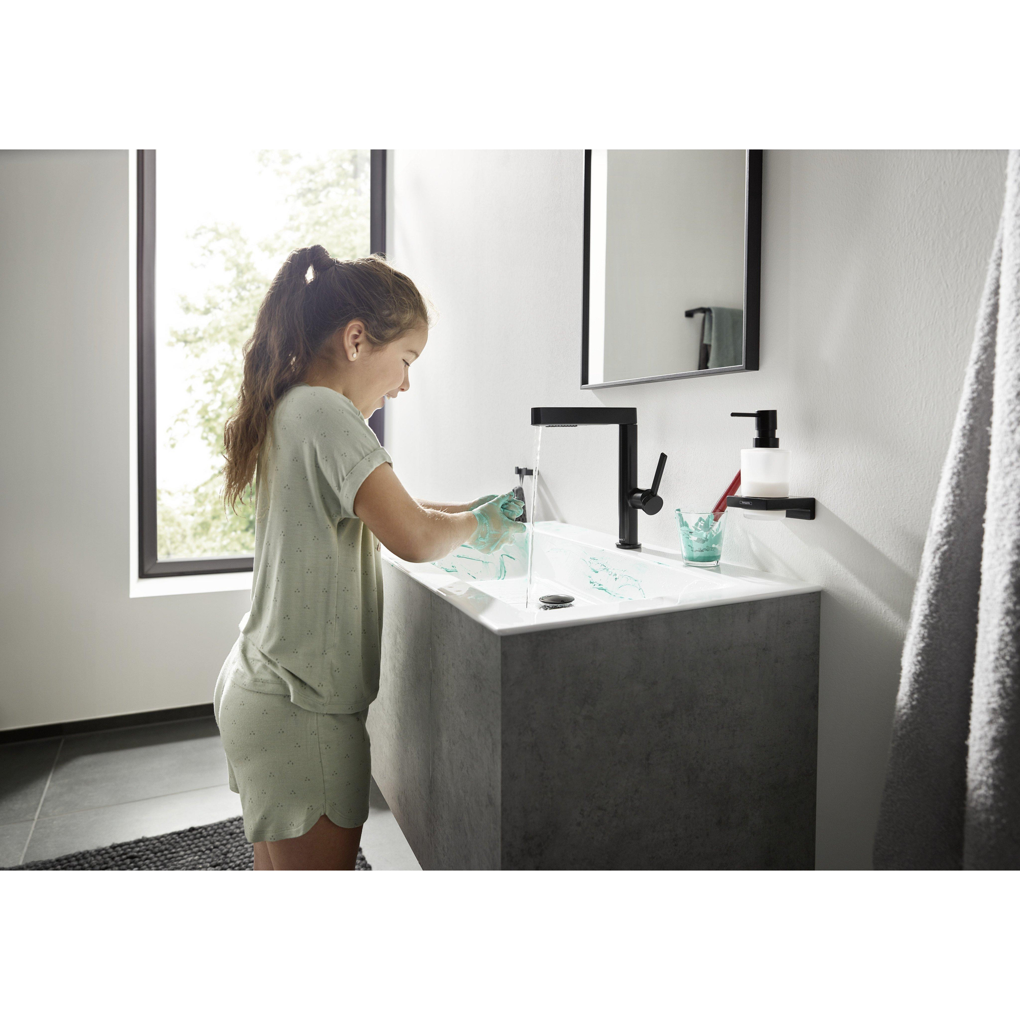 Le crochet double est conçu avec un souci du détail et une esthétique moderne. La finition noire mate donne un aspect robuste et pourtant raffiné qui se combine aisément avec d’autres accessoires de salle de bains. Grâce au design minimaliste, le crochet reste subtilement présent, sans dominer. Ainsi, vous ajoutez un élément élégant qui renforce l’ambiance de votre salle de bains. Ce crochet est un parfait accord avec des robinets géométriques et s’intègre parfaitement dans un style de salle de bains contemporain. Avec ce choix, vous montrez que vous avez le sens du design et de la qualité.