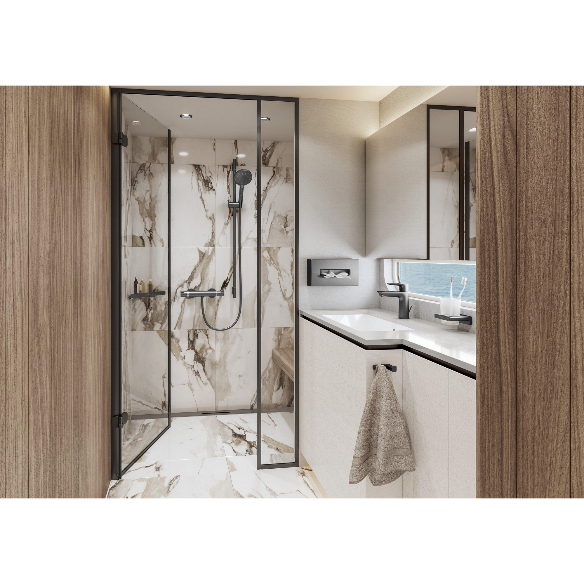 Cette étagère d'angle se distingue immédiatement par sa finition chrome noir brossé raffinée. Elle confère à votre salle de bains une allure moderne et luxueuse, parfaitement adaptée aux intérieurs contemporains. Les lignes épurées et le design minimaliste assurent une parfaite harmonie avec les autres accessoires de salle de bains, tels que les robinets géométriques populaires de la série hansgrohe Metropol. Vous créez ainsi une ambiance harmonieuse et élégante où chaque détail est soigné.