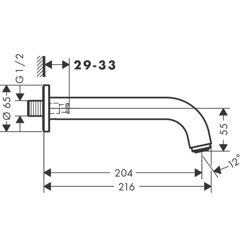 - Longueur de bec de 204 mm, idéal pour une fixation murale au-dessus de la baignoire