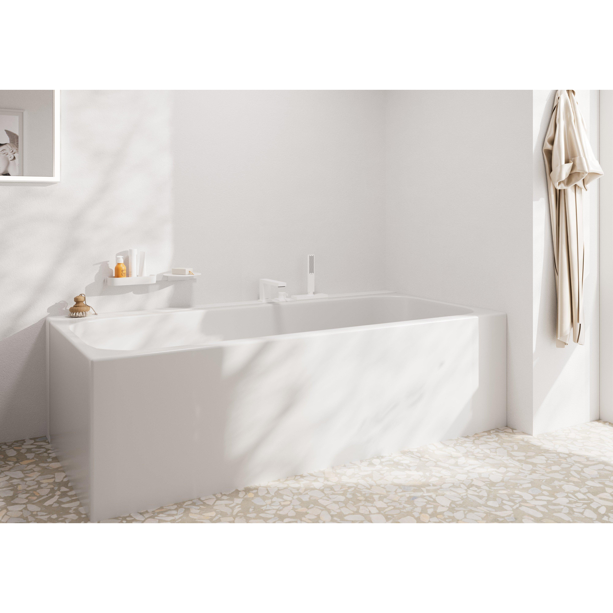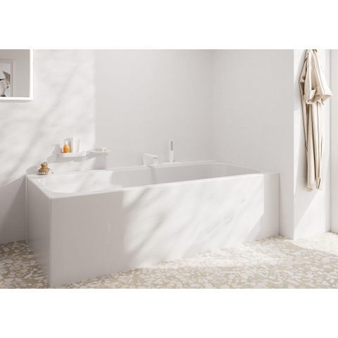 Cette tablette se distingue par sa finition blanche mate épurée qui s'harmonise parfaitement avec les tendances modernes de la salle de bains. Le design intemporel permet de la combiner facilement avec d'autres accessoires de la même série, créant ainsi un look harmonieux et cohérent. La forme subtile donne à votre salle de bains une apparence fraîche et lumineuse, sans que la tablette ne capte trop l'attention. Vous ajoutez ainsi une touche raffinée qui donne un peu plus de caractère à votre salle de bains.