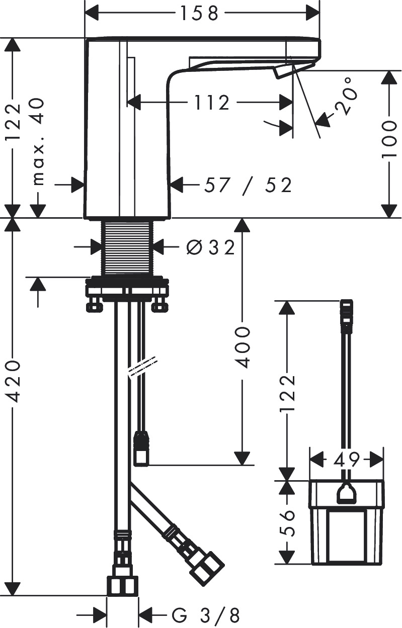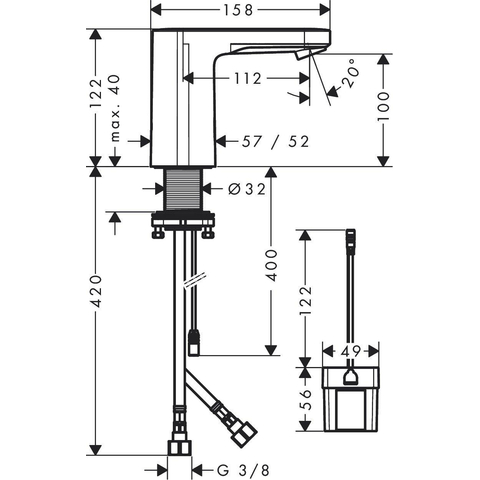 Hansgrohe Vernis Mitigeur lavabo électronique 6V eau chaude chrome