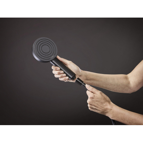 La finition mat noire assure un look intemporel et pourtant remarquable qui attire immédiatement l’attention. Le design rond avec un diamètre de 10,5 cm dégage simplicité et élégance, tandis que la plaque de jet couleur graphite offre un contraste subtil. Cette douchette n’est pas seulement un élément fonctionnel, mais une déclaration de design qui donne à votre salle de bains une apparence moderne et luxueuse. La surface mat noire est en outre facile à nettoyer, ce qui lui permet de toujours paraître comme neuve. Ainsi, vous profitez non seulement d’une belle salle de bains, mais aussi d’un produit facile d’entretien qui conserve son charme.