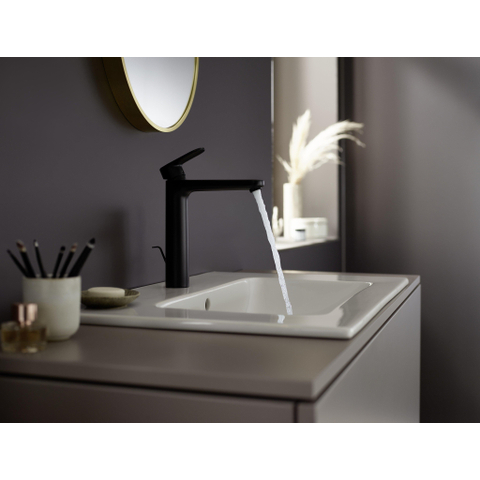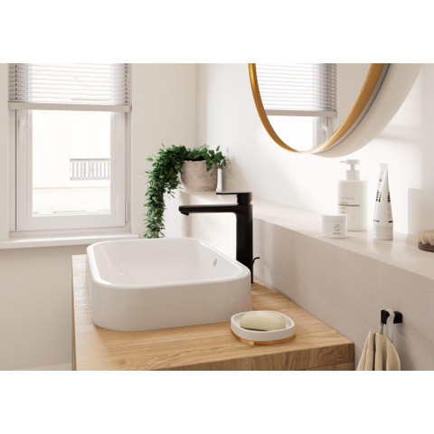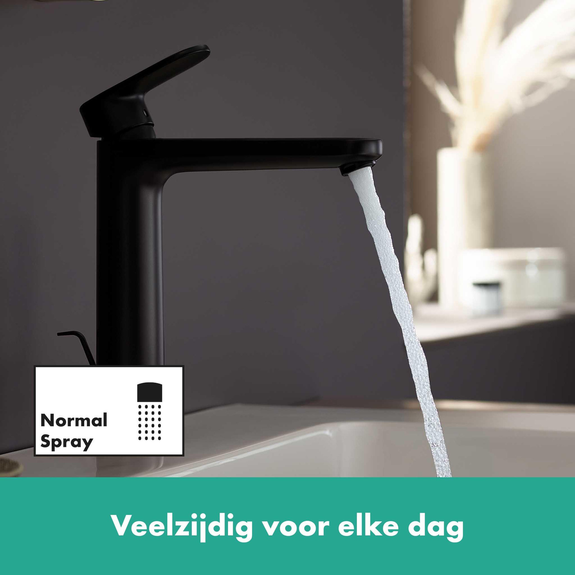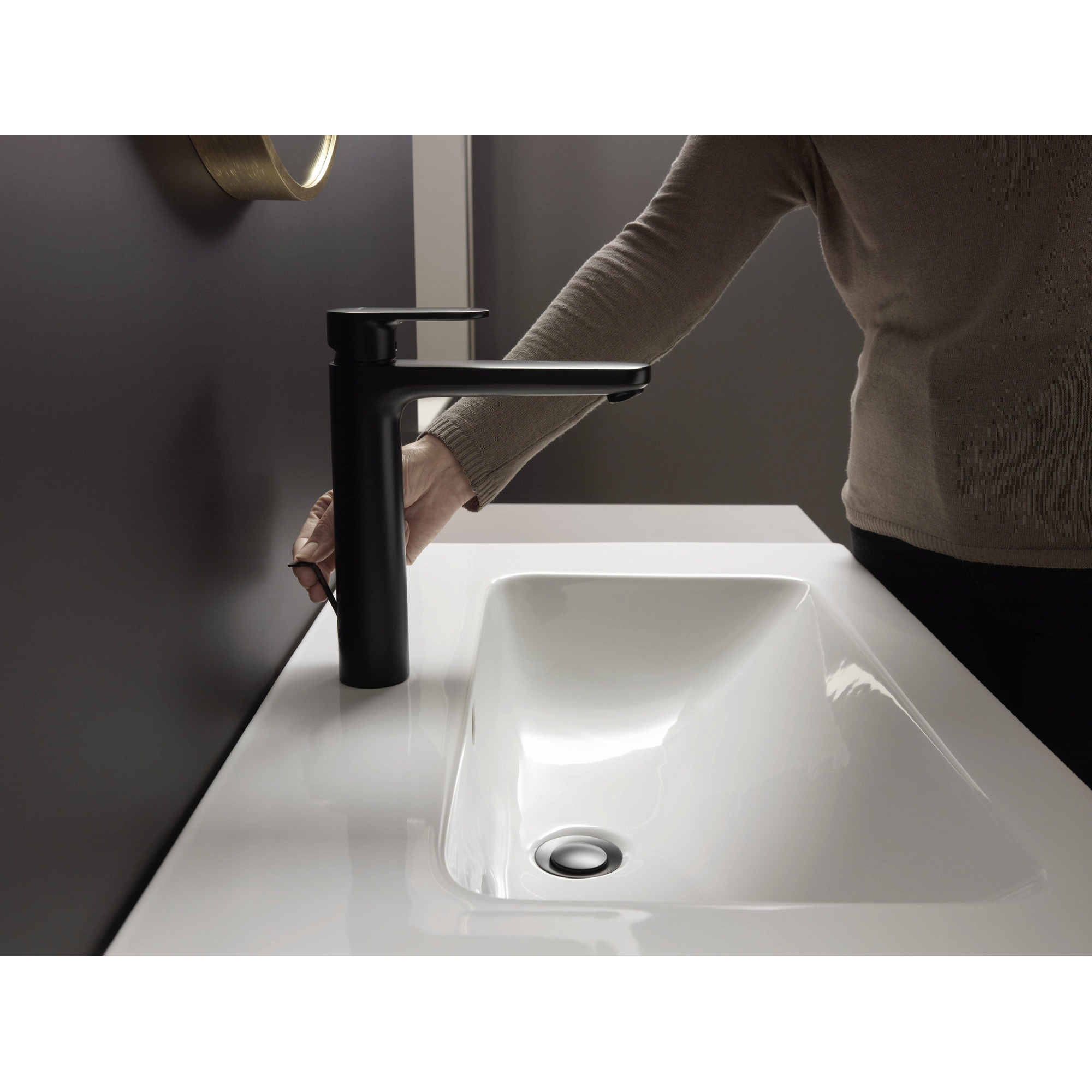 La finition mat noir confère au mitigeur un aspect affirmé et tendance qui donne immédiatement une sensation de luxe à votre salle de bains. Cette couleur est non seulement intemporelle, mais aussi étonnamment facile d’entretien : les empreintes digitales et les gouttes d’eau sont moins visibles, ce qui permet à votre lavabo de rester frais plus longtemps. Le design harmonieux avec des lignes épurées et un bec surélevé fait que le mitigeur s’adapte parfaitement aux vasques modernes et aux lavabos à poser. Vous créez ainsi un look élégant et cohérent qui élève votre salle de bains à un niveau supérieur.
