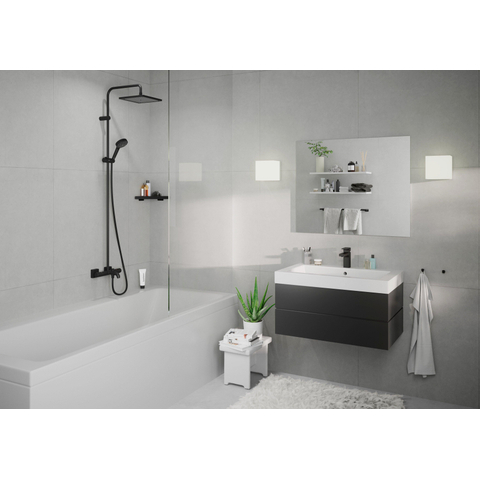 Le design de ce robinet est résolument moderne, avec des lignes nettes et une forme minimaliste qui s'adapte parfaitement aux salles de bains contemporaines. La couleur noire mate offre une apparence puissante et actuelle qui attire immédiatement l'œil sans dominer. Grâce à la commande à levier unique souple, vous réglez aisément la température et la pression de l'eau, ce qui augmente considérablement la facilité d'utilisation. De plus, les matériaux utilisés sont de première qualité, garantissant une longue durée de vie et des performances fiables. Ainsi, vous acquérez un robinet qui est non seulement beau, mais aussi fonctionnel et durable.