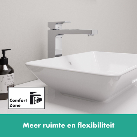 Le bec long crée un espace supplémentaire au-dessus du lavabo, facilitant le lavage des mains ou le remplissage d’eau en tout confort. Grâce à la technologie AirPower, l’eau est enrichie en air, ce qui donne un jet d’eau plein et doux avec moins d’éclaboussures. Le robinet s’installe facilement avec des flexibles de raccordement et convient à diverses applications, y compris les chauffe-eau. Vous bénéficiez ainsi d’un confort d’utilisation optimal sans tracas.