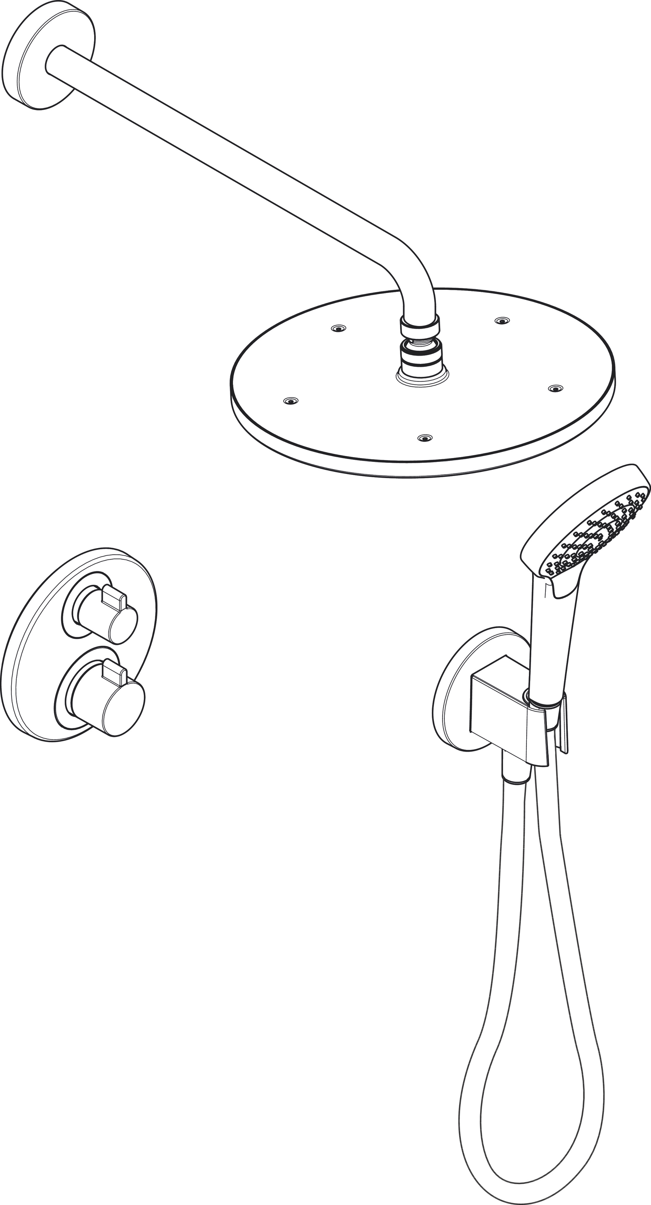 - Ensemble complet avec douche de tête, douchette, bras de douche, thermostat, corps encastré, raccord pour tuyau et tuyau de douche