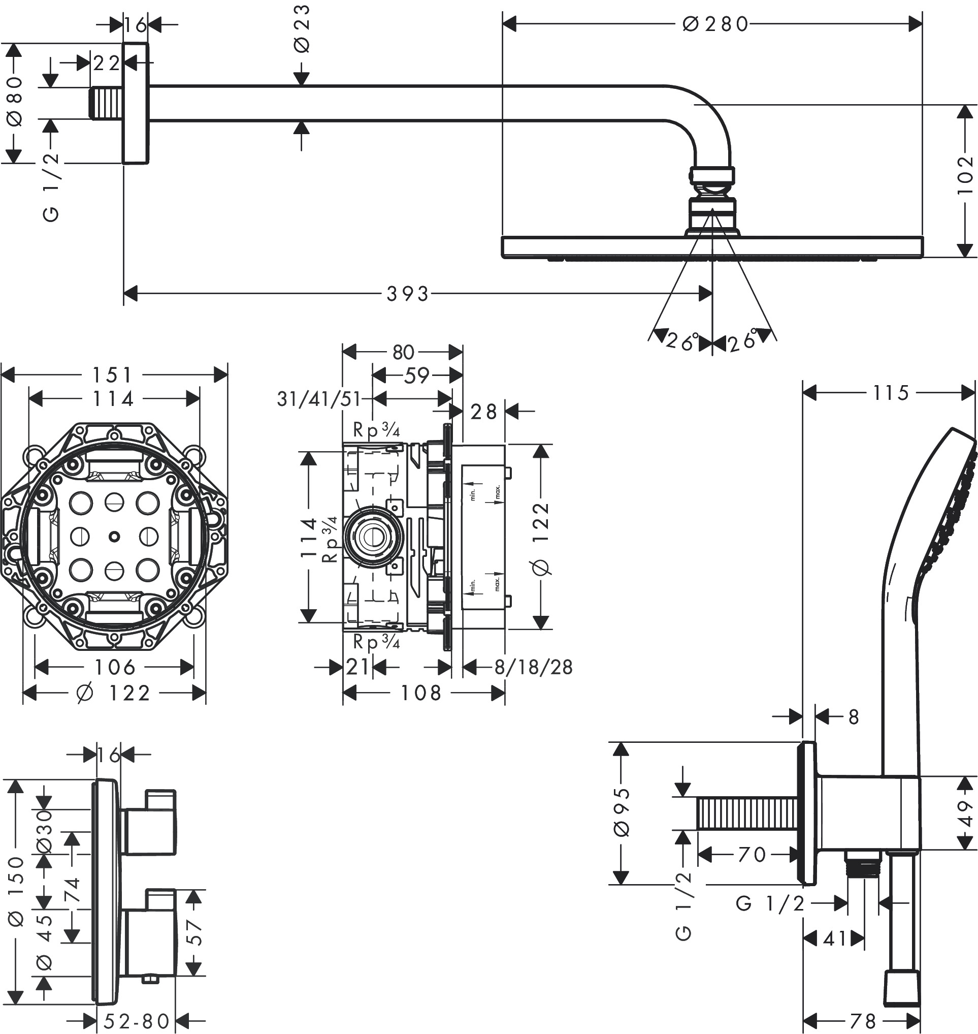 Hansgrohe est la marque haut de gamme du groupe international Hansgrohe pour les douches, les mitigeurs de salle de bains et de cuisine, les thermostats et les caniveaux. Récompensés par de nombreux prix dans le monde entier, les produits Hansgrohe sont synonymes de technologie innovante, de qualité fonctionnelle et de design de haut niveau. Ces derniers points constituent la base du succès de la marque en tant que leader mondial dans le secteur de la douche et en tant que l'un des principaux fabricants de sanitaires au monde. Avec des inventions telles que la barre coulissante, les jets de douche réglables, le système anti-calcaire QuickClean, les technologies AirPower, EcoSmart, CoolStart et Select, Hansgrohe est considéré comme un leader innovant dans le secteur sanitaire international. |