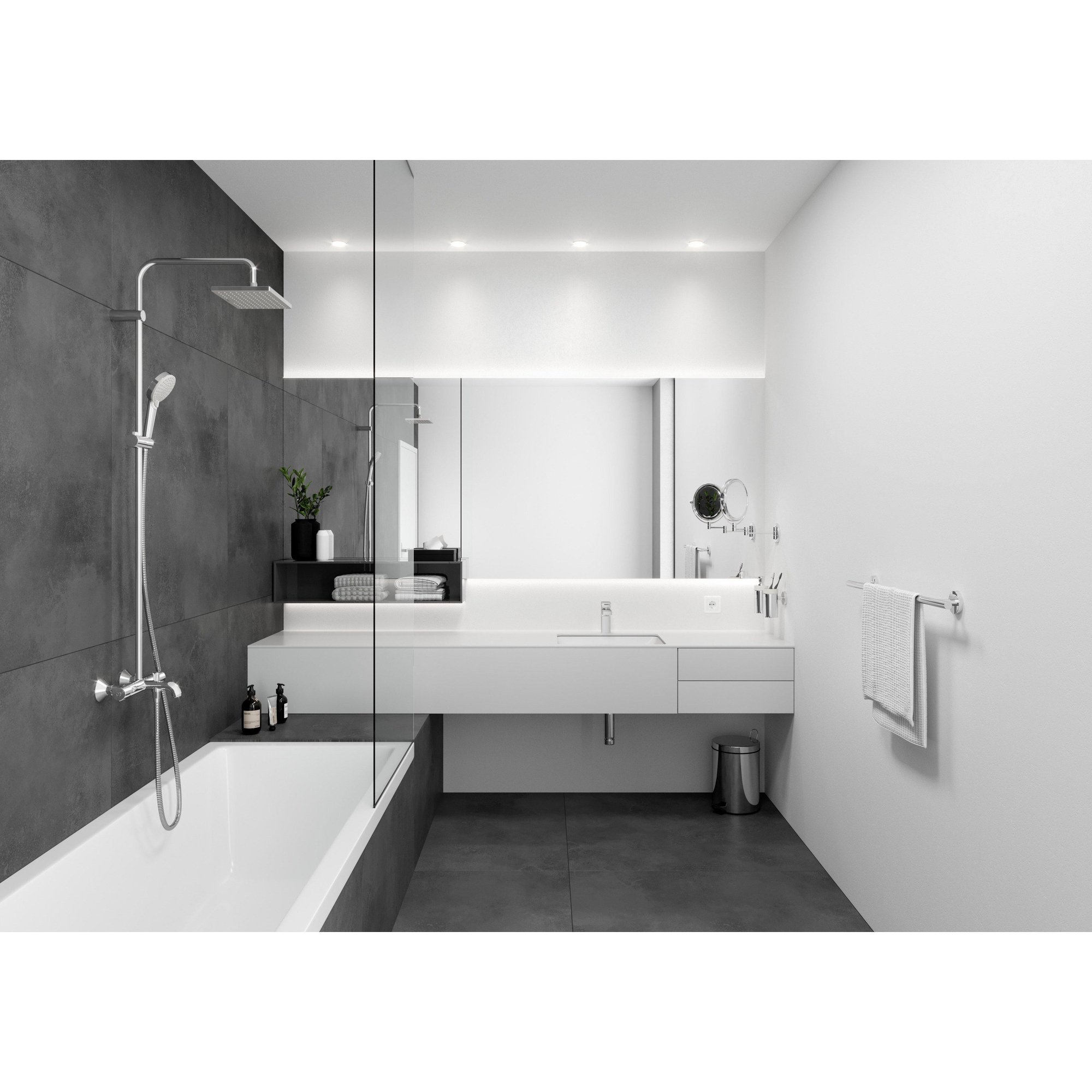 Le mitigeur est équipé de technologies intelligentes telles qu'EcoSmart, qui limite le débit d'eau à 4,3 litres par minute sans compromettre le confort. Cela signifie que vous économisez de l'eau tout en profitant d'un jet d'eau plein et doux grâce à AirPower, qui enrichit l'eau en air pour réduire les éclaboussures. La garniture de vidage pop-up fournie se commande facilement d'une seule main, ce qui rend l'utilisation encore plus agréable. De plus, l'installation est simple grâce aux flexibles de raccordement flexibles, vous permettant de profiter rapidement et sans tracas de votre nouveau mitigeur.