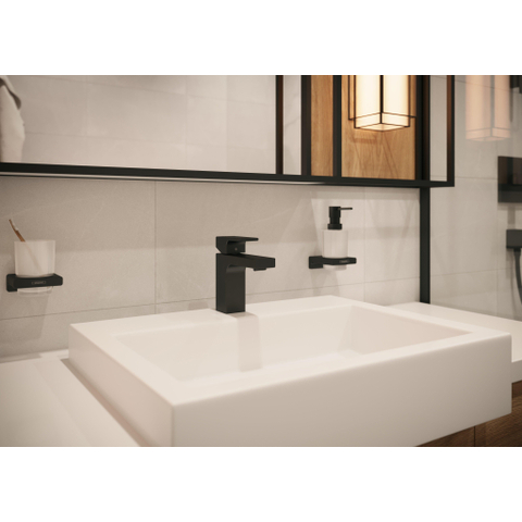 Avec ce mitigeur, vous donnez à votre salle de bains ou toilettes d'invités une mise à niveau moderne et élégante immédiate. Le design noir mat se distingue par l'équilibre parfait entre formes rondes et angulaires, ce qui en fait un véritable point focal sans dominer. Grâce aux dimensions intelligentes et à la distance confortable entre le bec et le lavabo (ComfortZone 100), vous bénéficiez d'un espace de mouvement supplémentaire, ce qui augmente considérablement la facilité d'utilisation. De plus, la conduite d'eau interne garantit que l'eau potable n'entre jamais en contact avec le métal, ce qui améliore l'hygiène. Ce mitigeur combine un aspect épuré avec des fonctions pratiques qui rendent votre routine quotidienne plus agréable, tout en contribuant à une consommation d'eau plus durable. Ainsi, votre salle de bains devient non seulement plus belle, mais aussi plus intelligente et respectueuse de l'environnement.