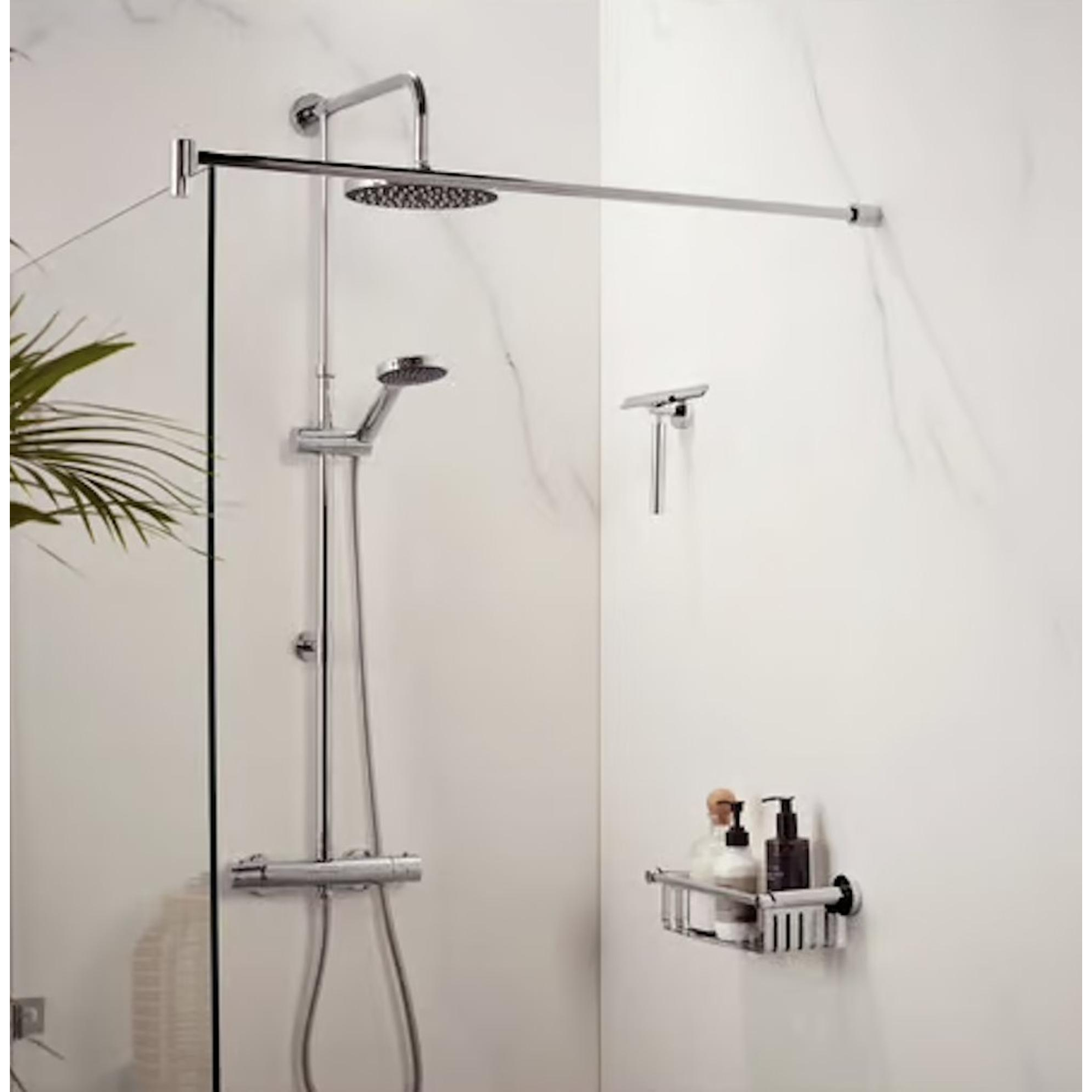 Avec le Haceka Kosmos Panier de douche - 35x13x10cm - chrome, vous gardez shampoings, gels douche et produits de soin à portée de main, sans flacons qui traînent au sol ou sur le bord du receveur de douche. Ses dimensions généreuses de 35x13x10 cm offrent suffisamment de place pour plusieurs bouteilles et accessoires, ce qui est idéal dans une salle de bains utilisée par toute la famille. La structure ouverte du panier de douche assure une bonne évacuation de l’eau, évitant la stagnation et facilitant le nettoyage des parois et des carreaux de douche. Vous profitez ainsi d’un espace de douche hygiénique, sûr et parfaitement organisé.