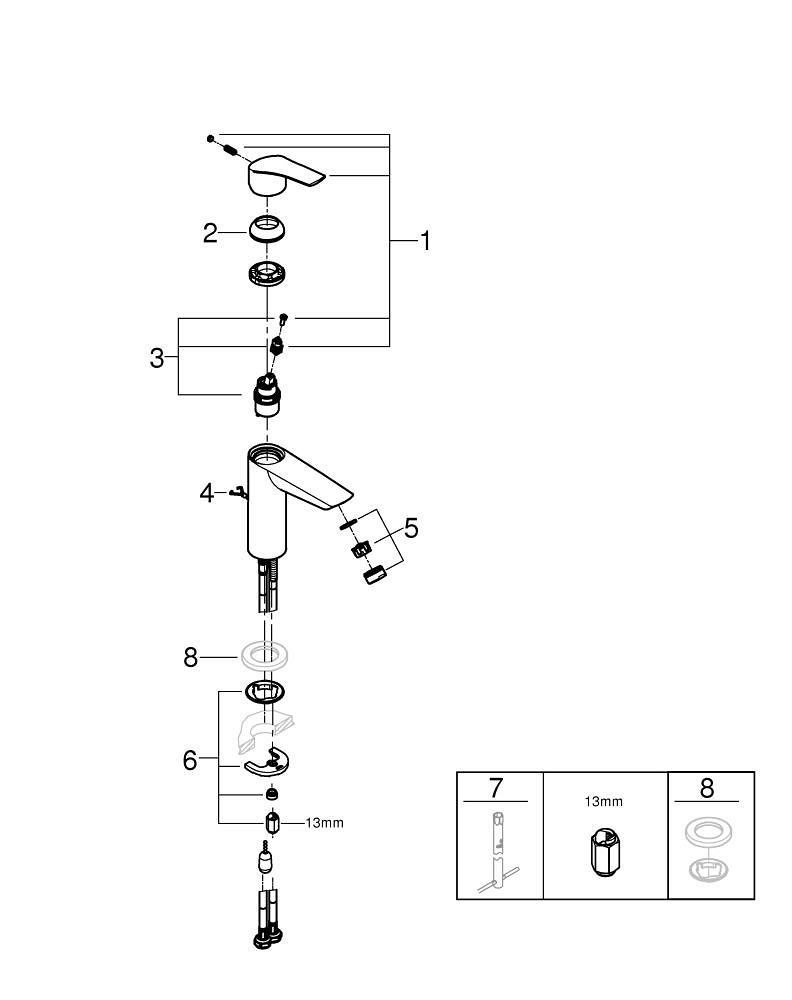 GROHE Eurosmart ensemble de robinet économique m-size avec chaîne chrome