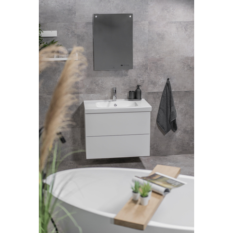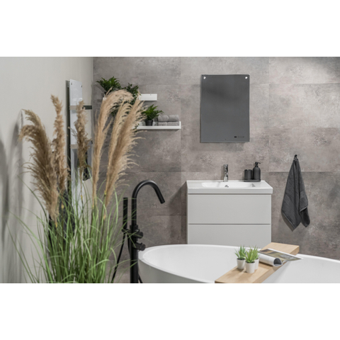 Ce Eurom Sani 400 Mirror panneau infrarouge avec miroir 50x70cm - WiFi - 400 watt combine une surface de miroir lisse avec un design minimaliste, ce qui le rend parfait pour les salles de bains contemporaines et les espaces bien-être. Le miroir chauffant limite la buée sur la surface, de sorte que vous puissiez utiliser un miroir clair juste après la douche ou le bain, notamment au-dessus du lavabo. Grâce à sa forme plate et à son aspect neutre, le panneau se marie facilement avec de nombreux styles de salle de bains, du moderne à l’industriel en passant par le scandinave et le classique. Vous créez ainsi une ambiance harmonieuse où chauffage, miroir et autres éléments sanitaires sont parfaitement coordonnés.