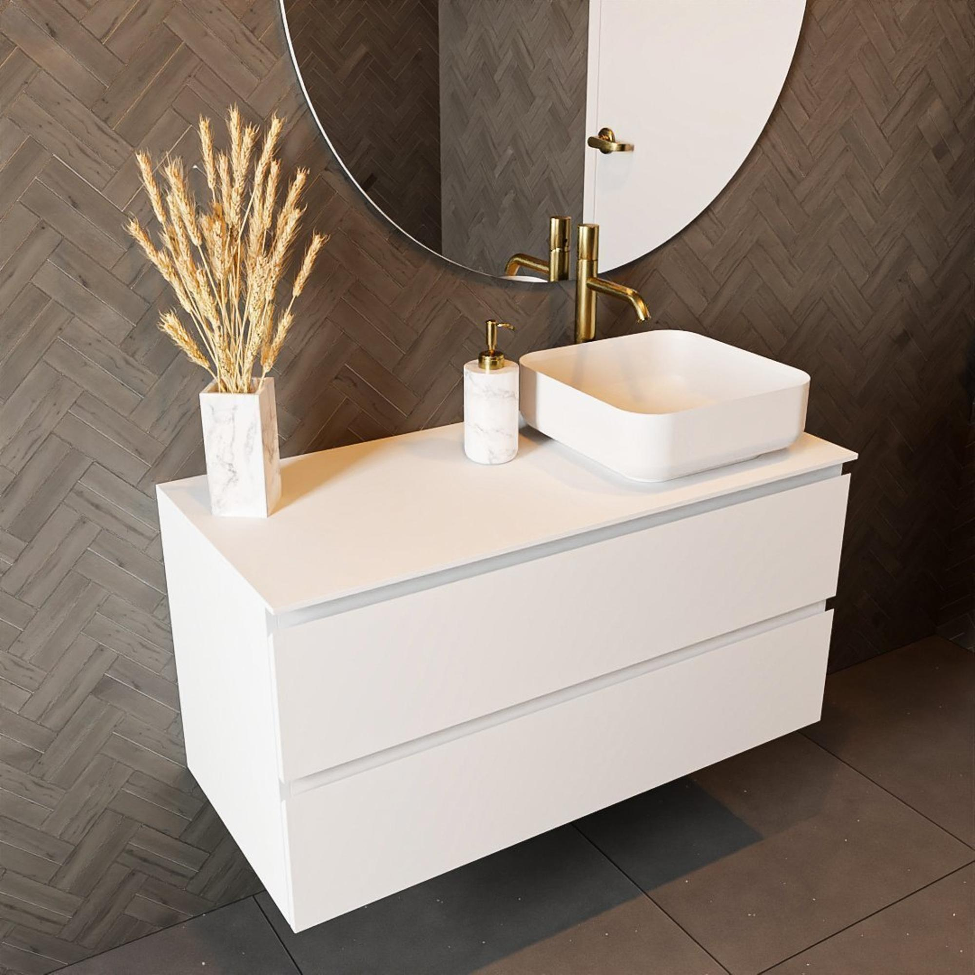 MONDIAZ TOP 46 Talc Plateau / plan de dessus en Solid Surface 101cm Épaisseur du plateau 0.9cm Plateau adapté pour plaque de recouvrement | vasque