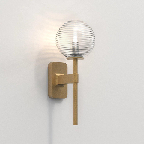Astro Tacoma Single applique murale incluant boule en verre opale claire cannelée de 13,5 cm laiton authentique