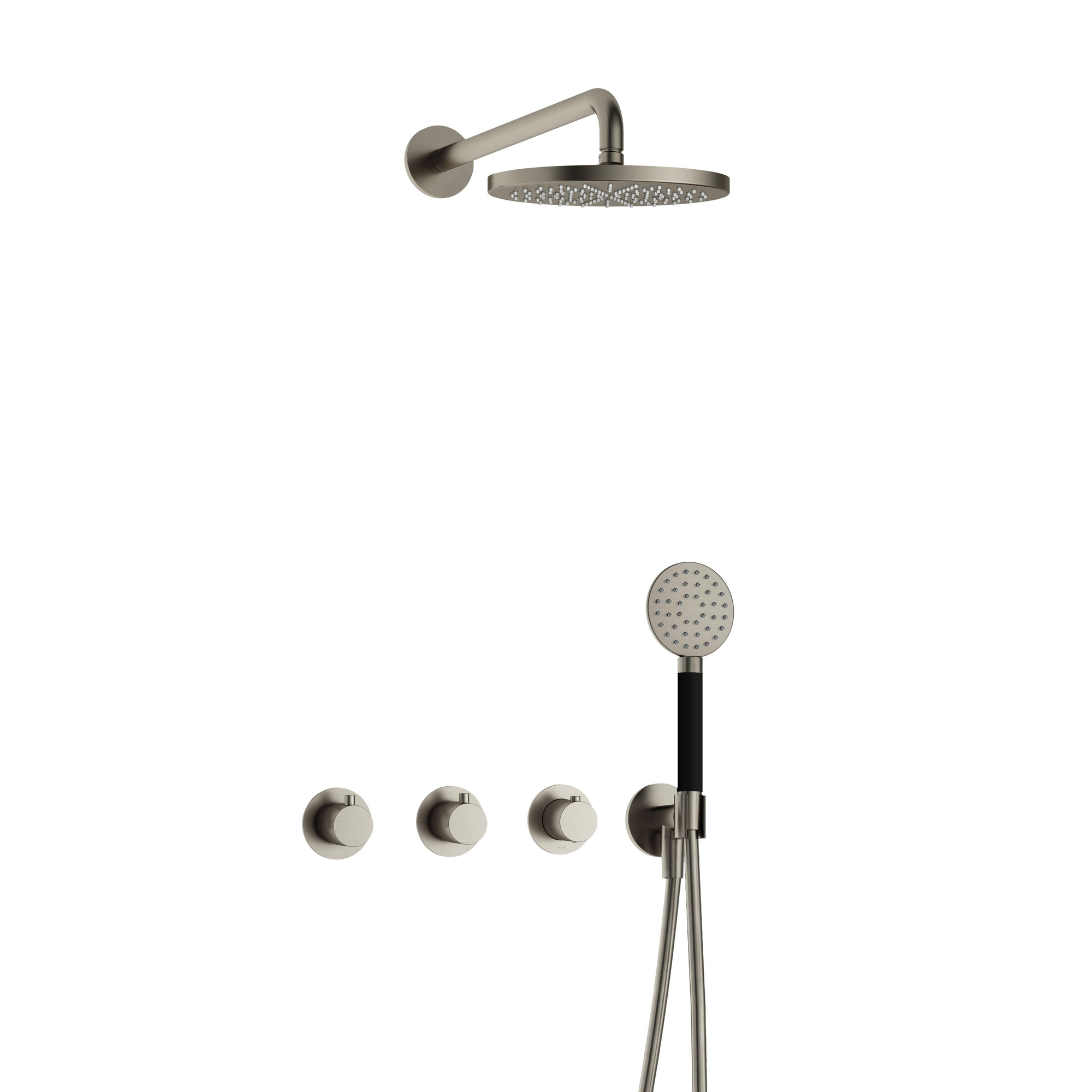 Hotbath cobber ensemble de douche thermostatique encastré avec 2 robinets d'arrêt et douchette à main ronde nickel brossé