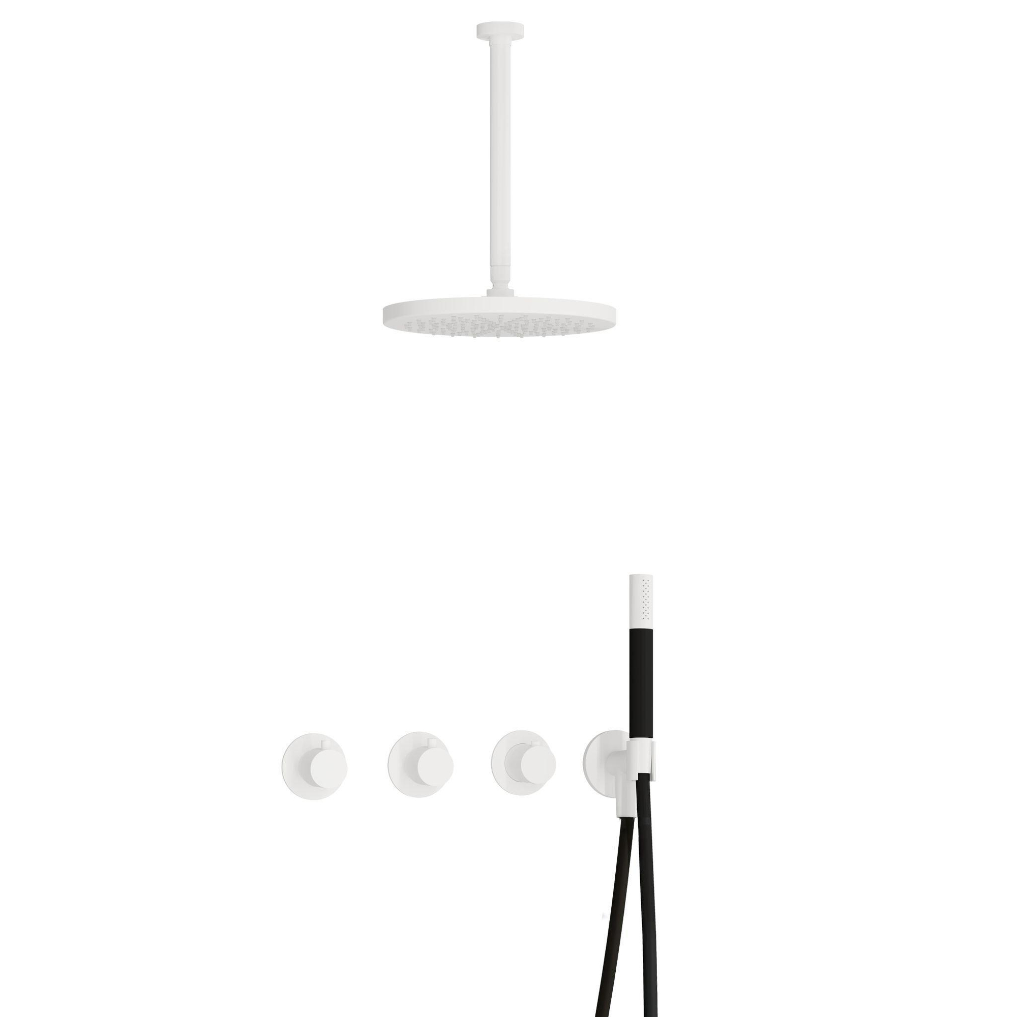 Hotbath Cobber IBS70 Ensemble de douche de tête encastré - bras de plafond 30 cm - douche de tête ronde 30 cm - douchette à main bâton - blanc mat
