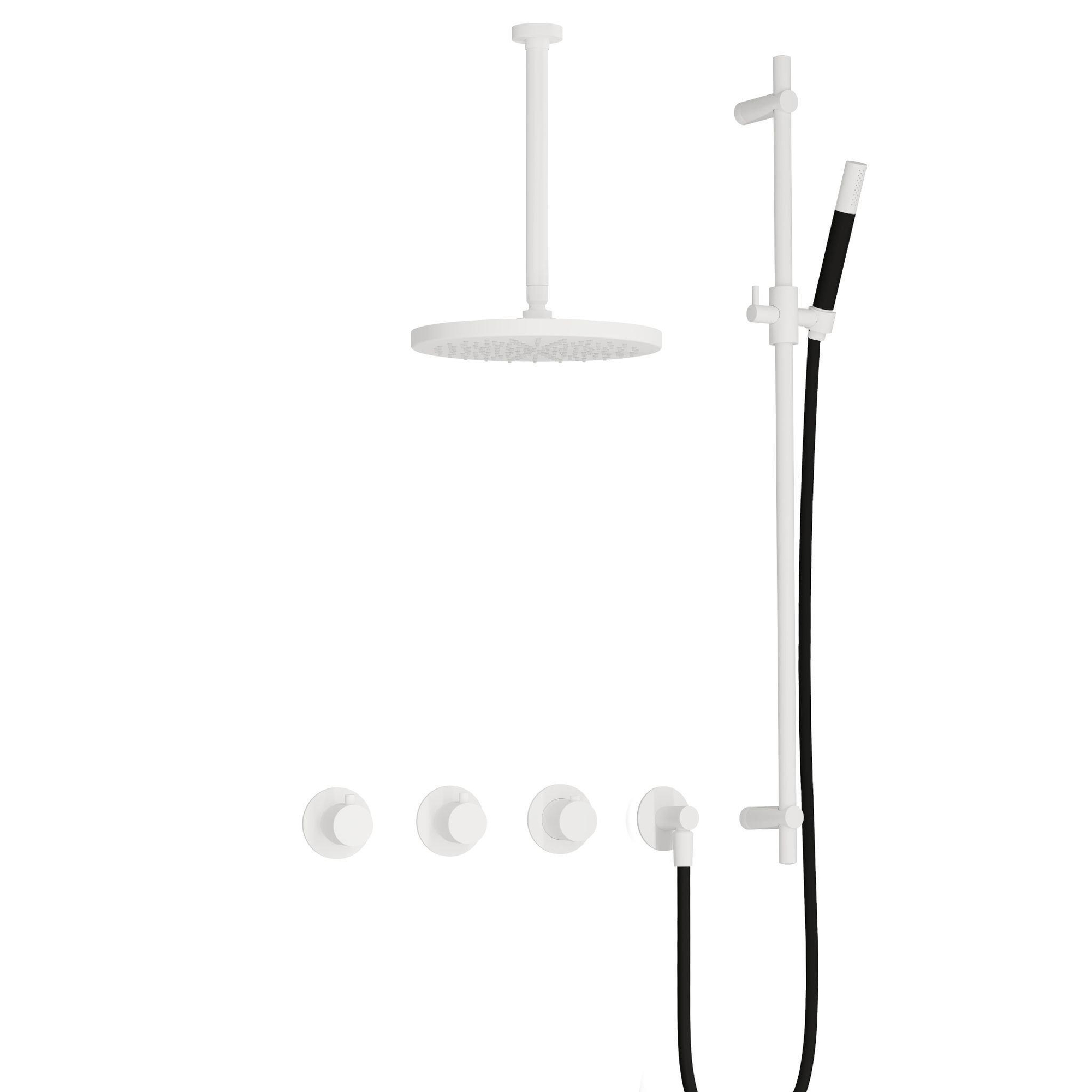 Hotbath Cobber IBS70 Ensemble de douche de tête encastré - bras de plafond 30 cm - douche de tête ronde 30 cm - douchette stick - barre de douche - blanc mat